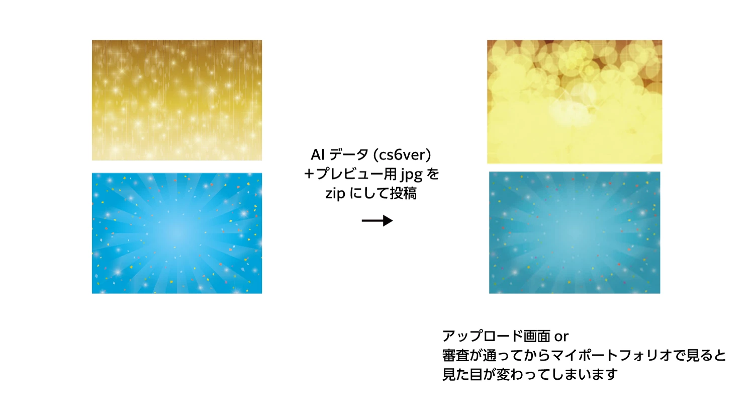 ベクター&JPGのイラストを投稿しているのですが、アップされたイラストの見た目が変わってしまっていることがあり困っております。