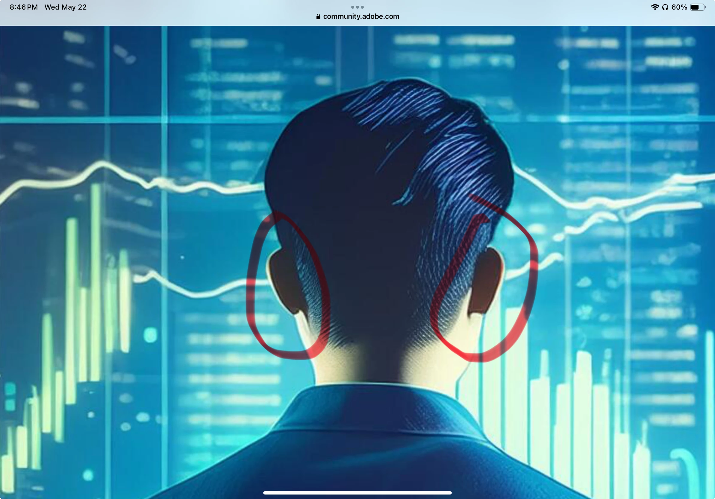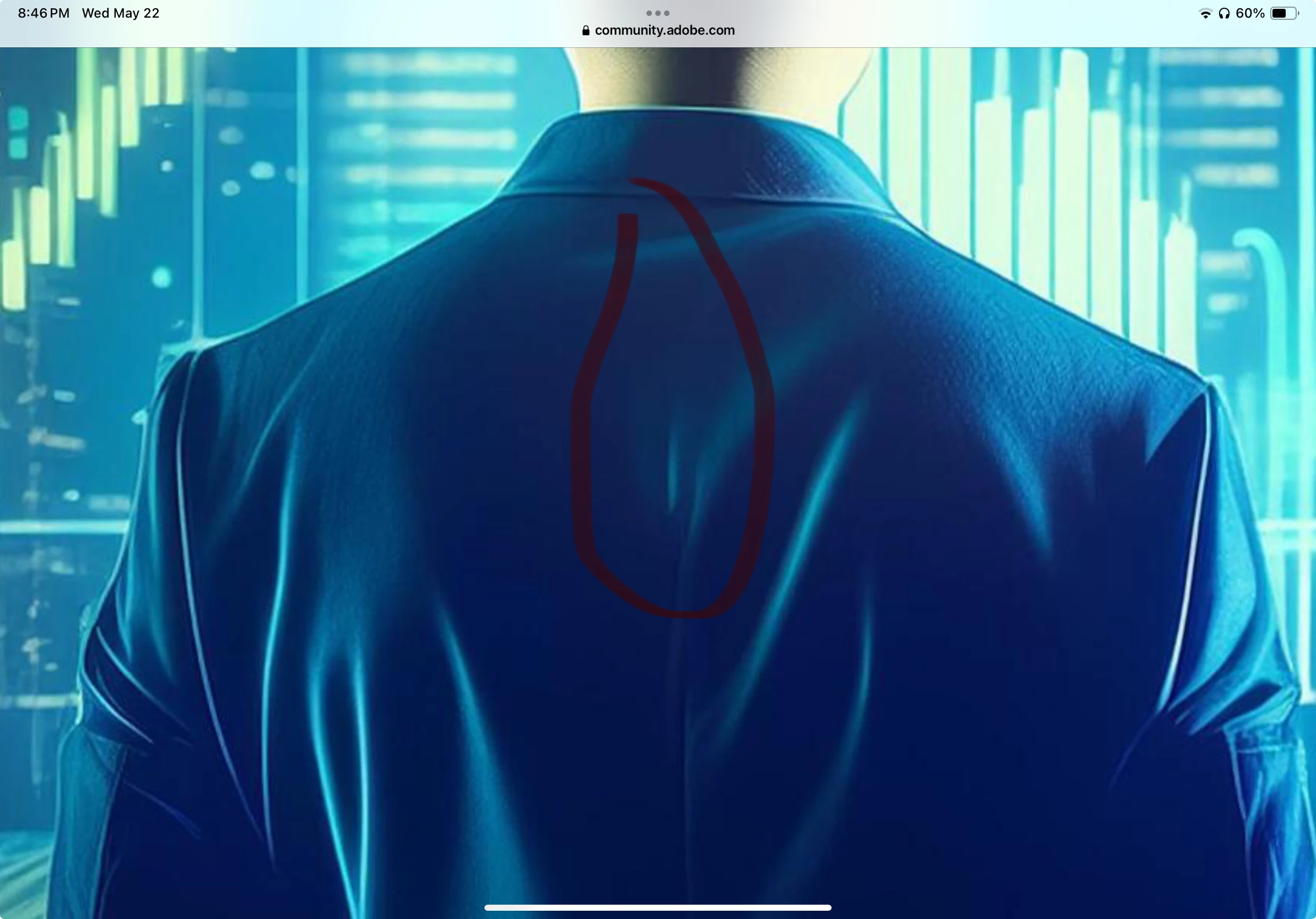 There's a seam in the back of the jacket that just disappears. The man's ears look they have been pasted on.