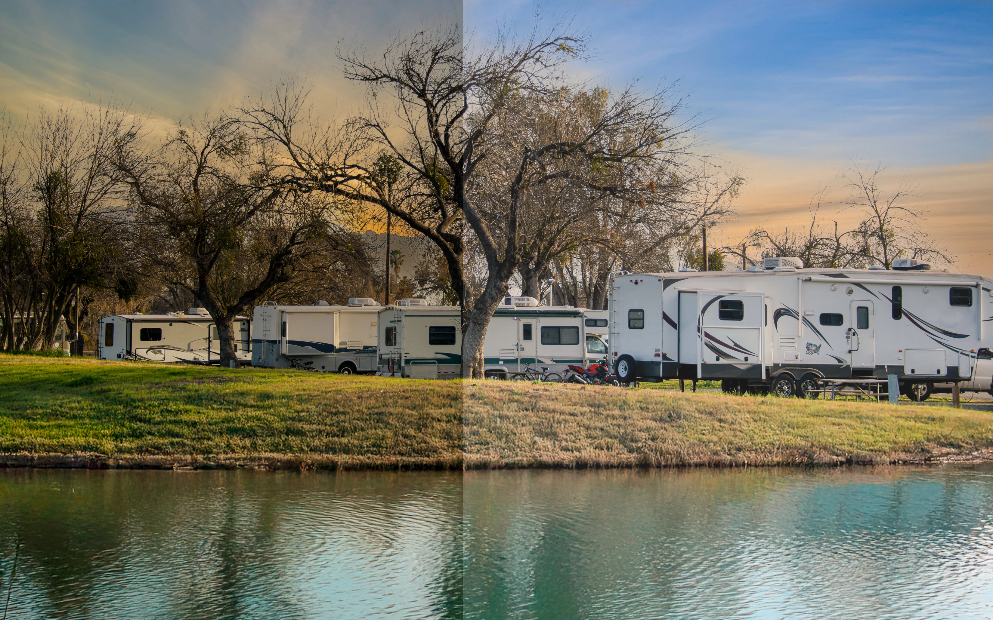 It may depend on the moderator's understanding of when a property release is required. From my point of view, an RV is a home, or at least a home away from home, and could conceivably require a release. I'd make the quality corrections, look for any logos on the RVs, and try again. That's one option.