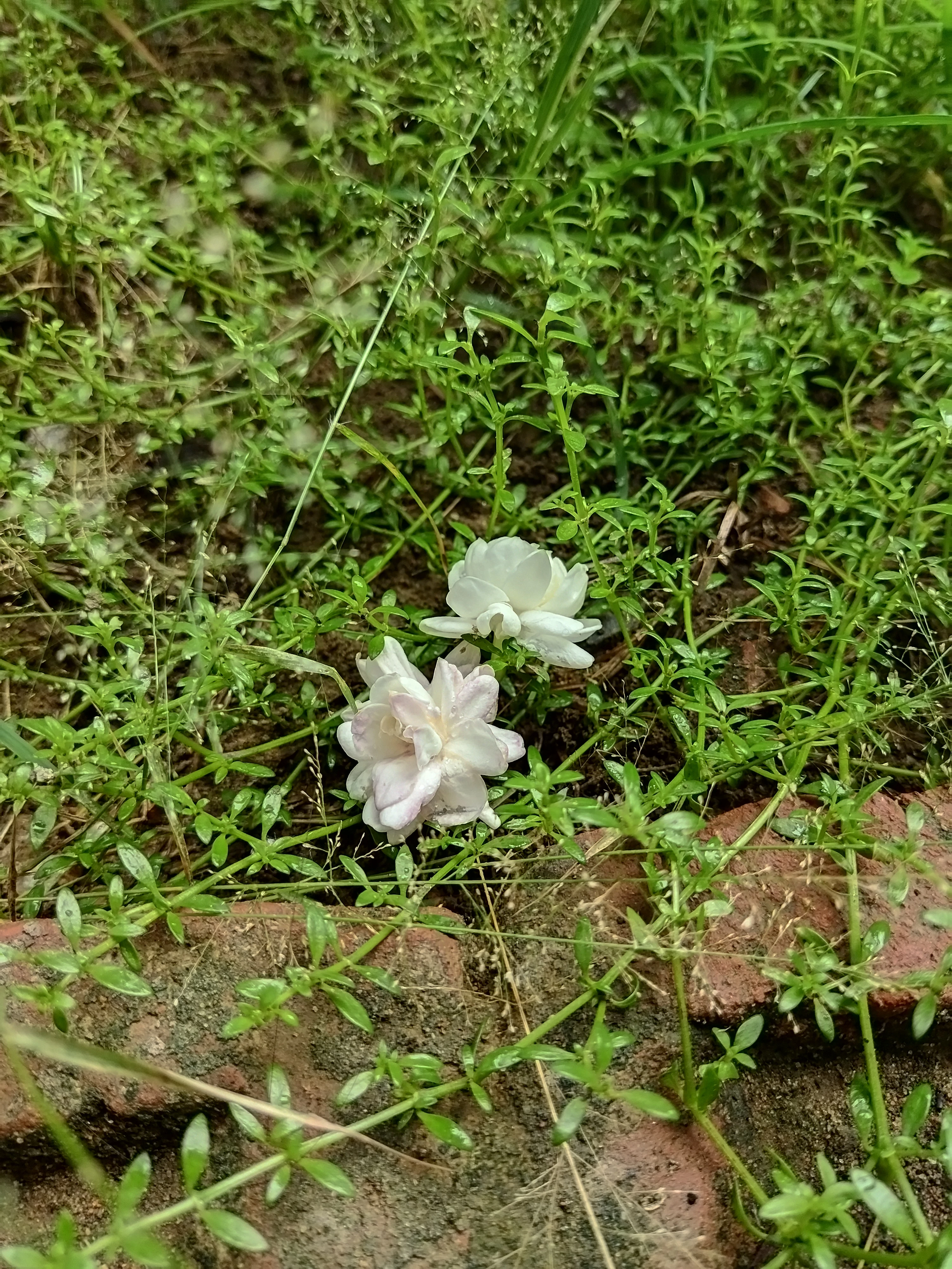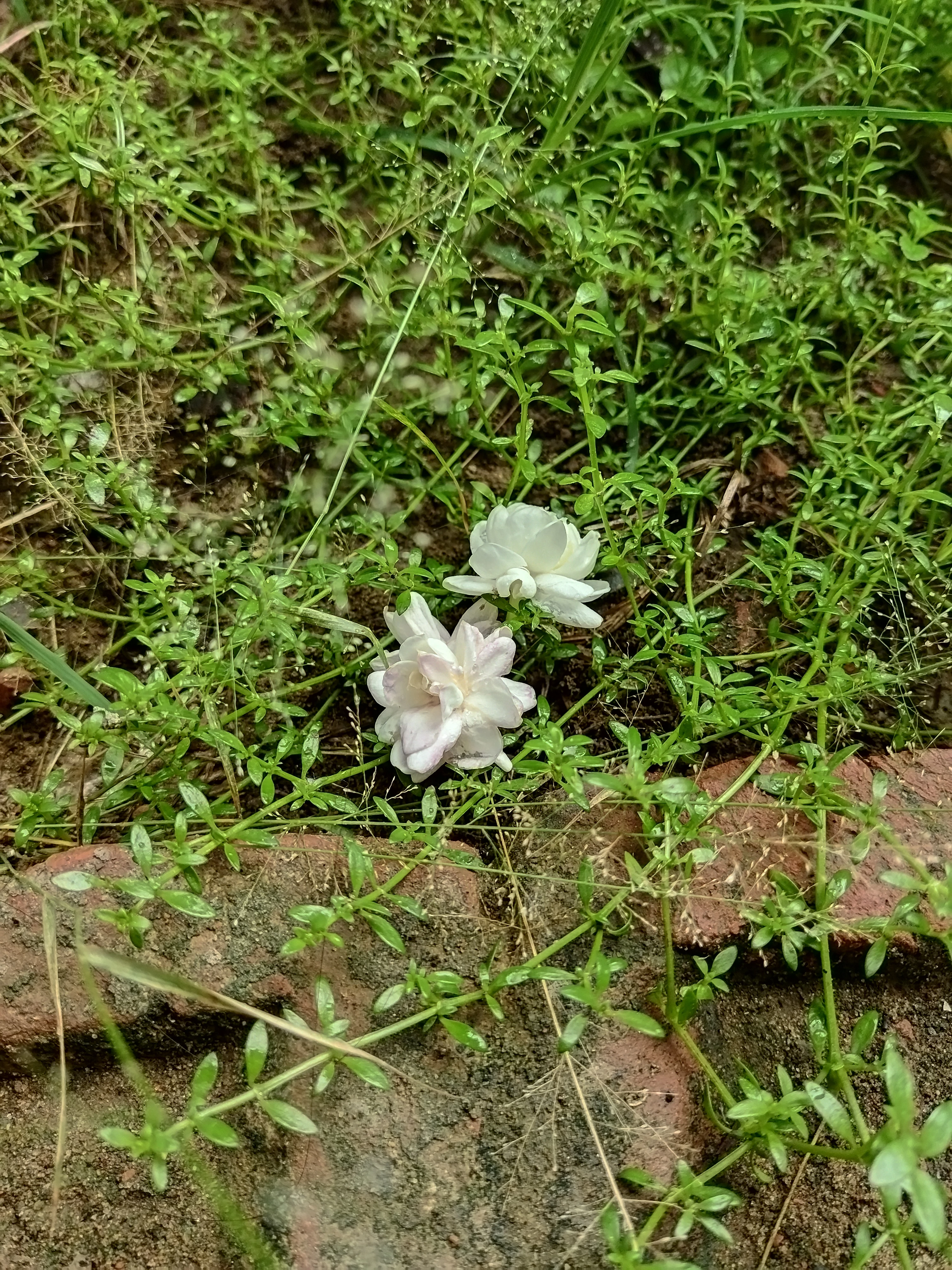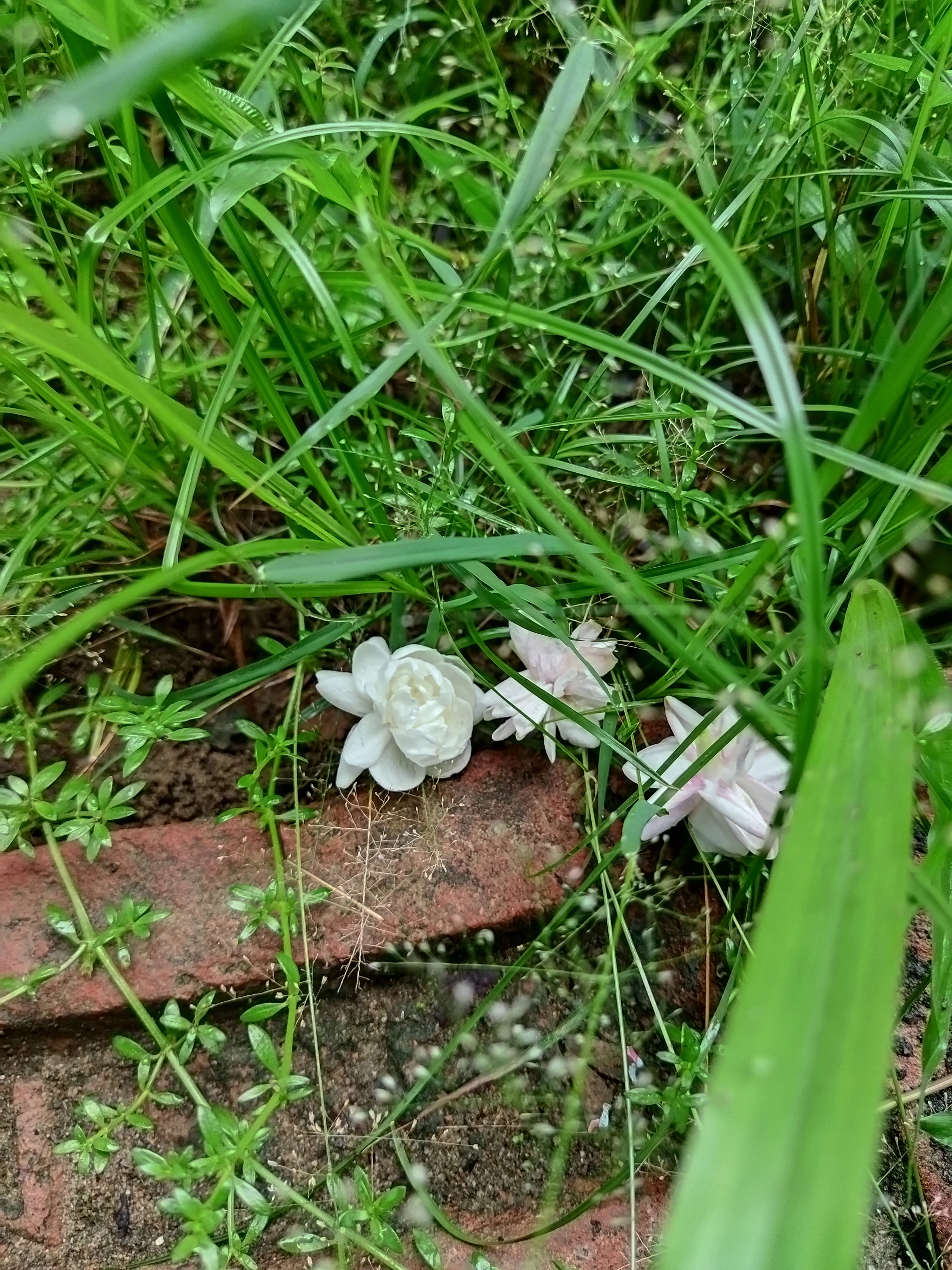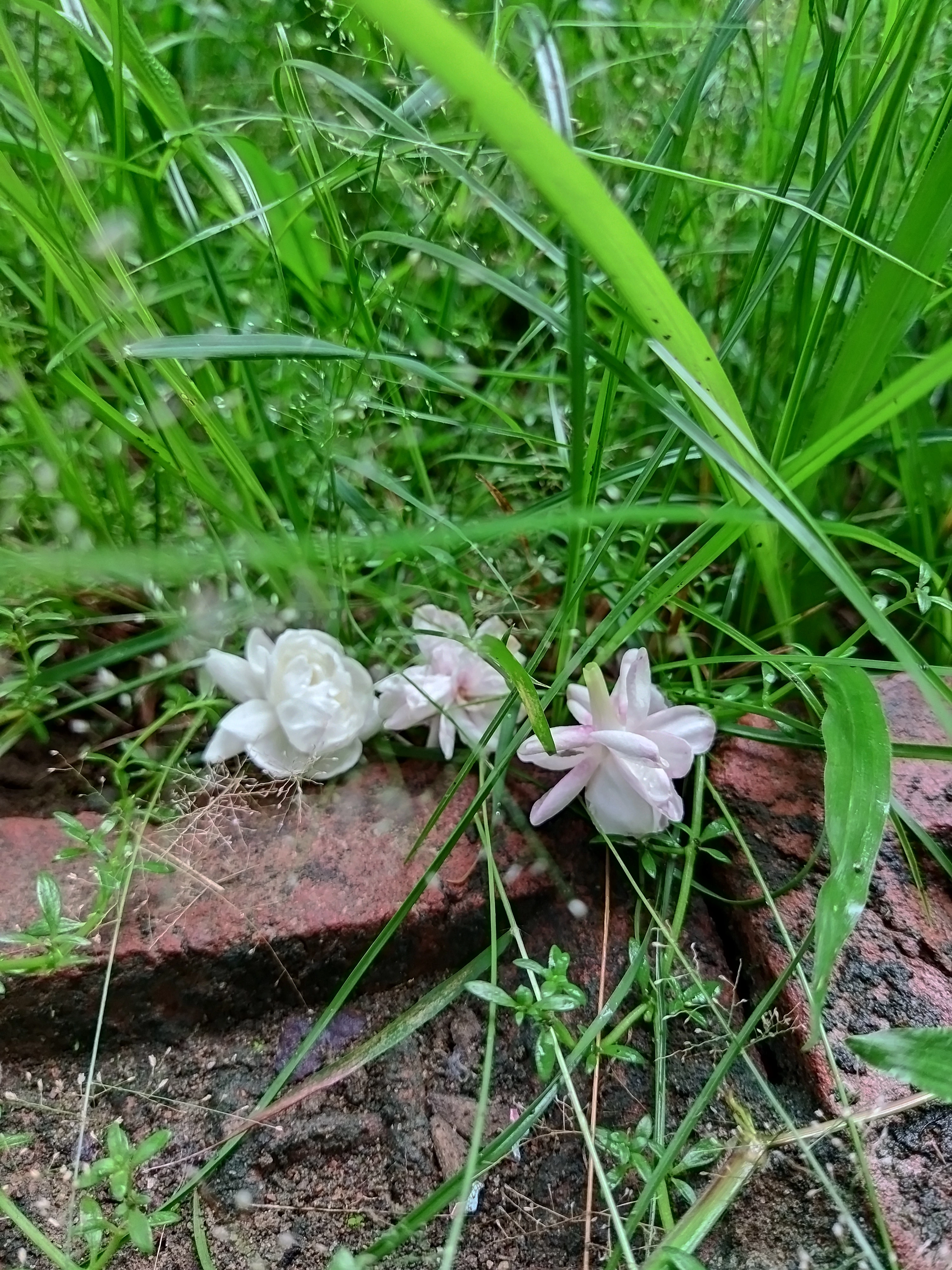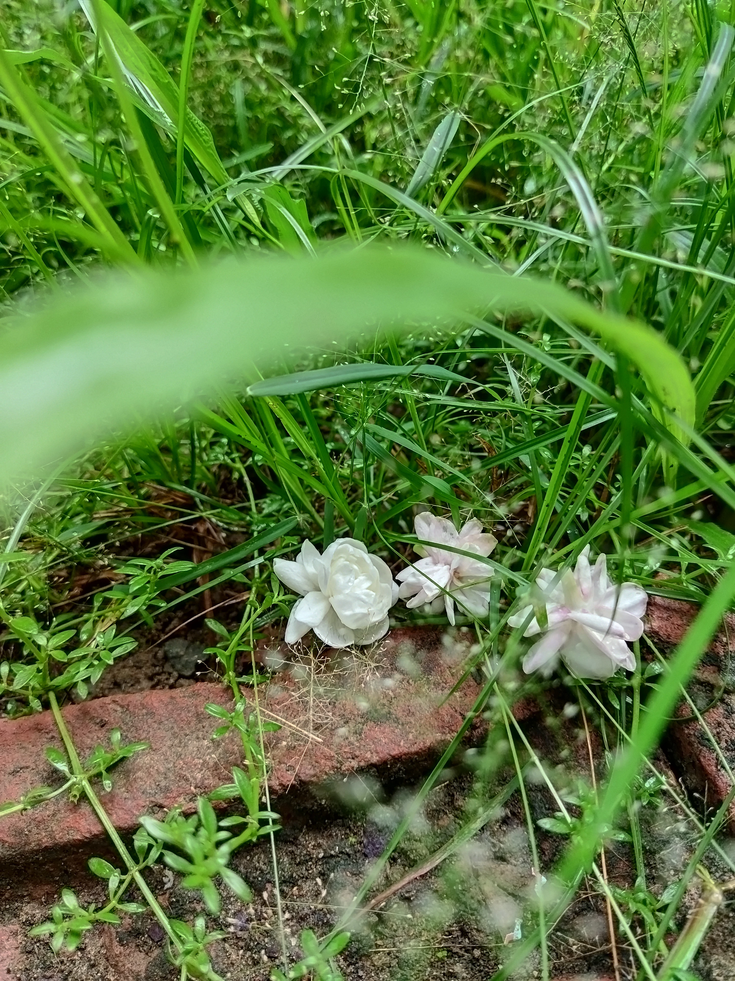 a jasmine flower on the grass and stone