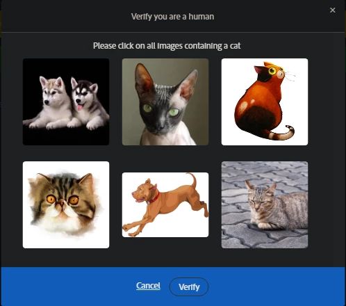 Hmmmm...  looks like Adobe is filtering out submissions from artificial intelligence bots.