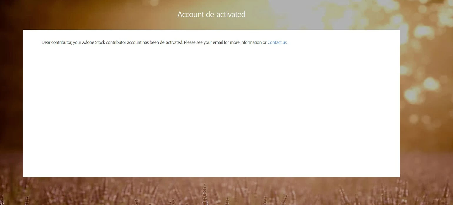 On 11 March my Adobe contributor account was de-activated without mentioning any reason, and the worst part about Adobe is not giving enough support, particularly to the contributor account holder, I have already sent an email to the support team but still haven't got the answer or any other support from them. one thing I want know that is it possible to get back that >