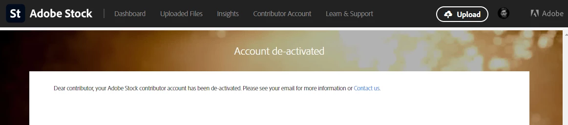I recently received such a notification. Nothing came to my email, and there was no reason to block it. The account is about 10 years old, I have always followed all the Adobe rules and tried to always comply with them. There are several thousand materials in my profile, and at the moment I had $2,000 in my account. I wrote in support, there was no response. Can I at least withdraw my own money from your resource? I hope there has been some misunderstanding and we can continue to work together. Thank you.