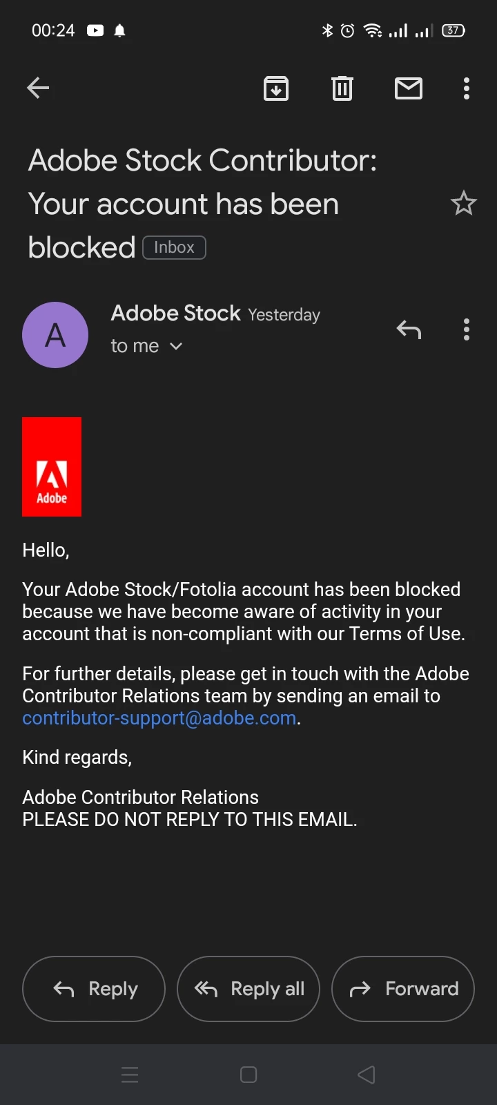"Account validation issue. Your account has a validation status issue. You should Contact us.