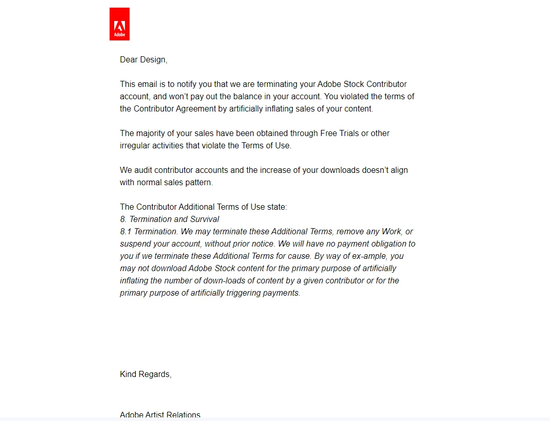 There is no solution. As stated in the email, your account has been terminated. You will need to find another stock agency to sell your images.