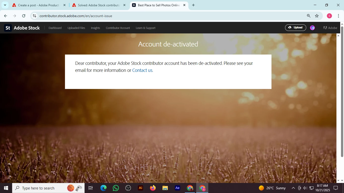 Adobe Contributor account has been deactivated, please help