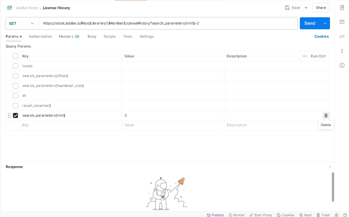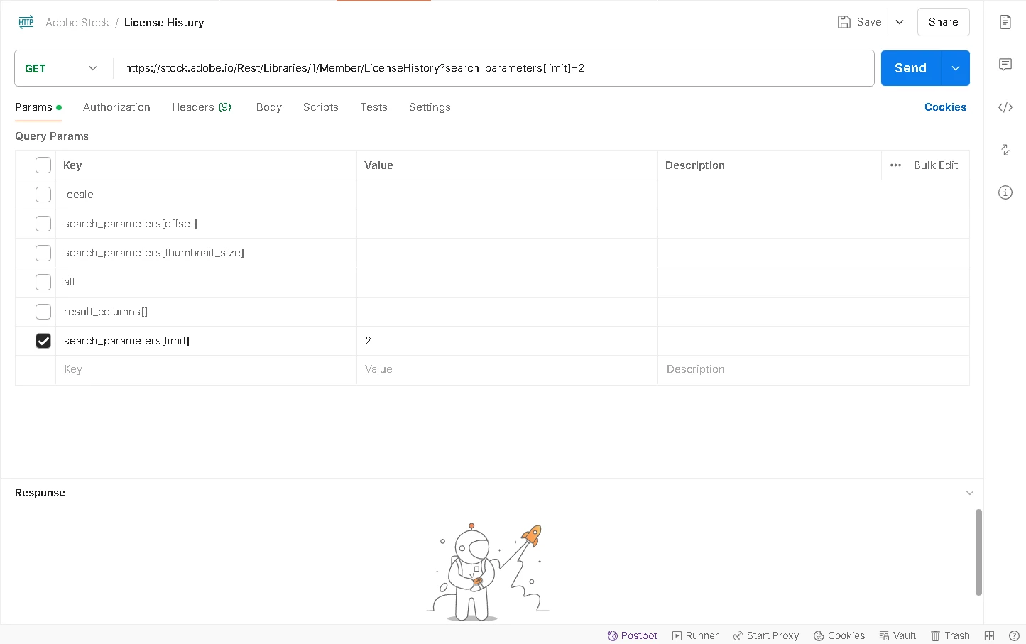 I need to filter license history of my adobe stock assets using date criteria. I am able to work with other some the search parameters below like search_parameters[limit], search_parameters[thumbnail_size].