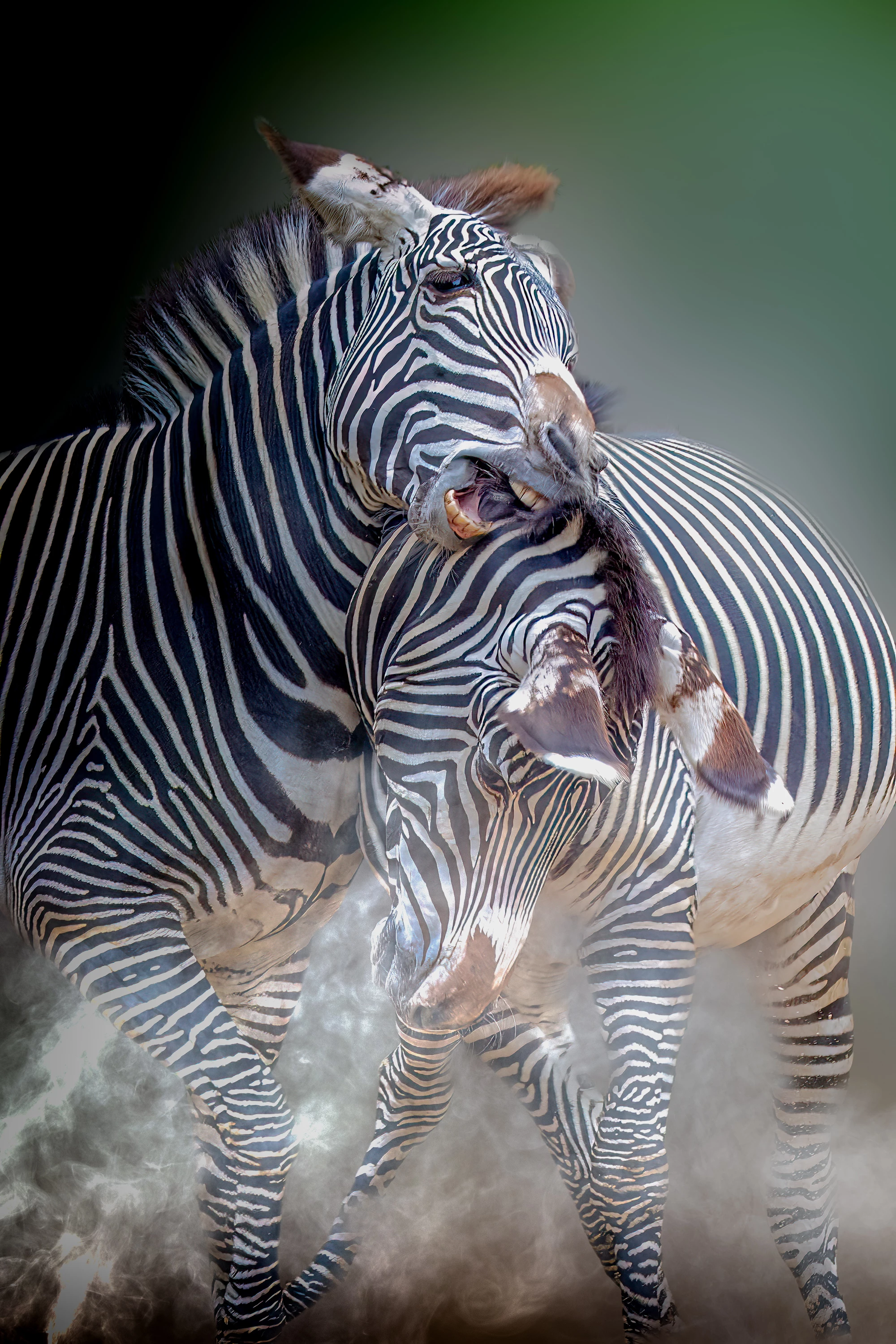 bei dem ersten Bild weisen die schwarzen Streifen des rechten Zebras Farbsäume auf und bei dem zweiten Bild ist das Auge nicht richtig scharf.