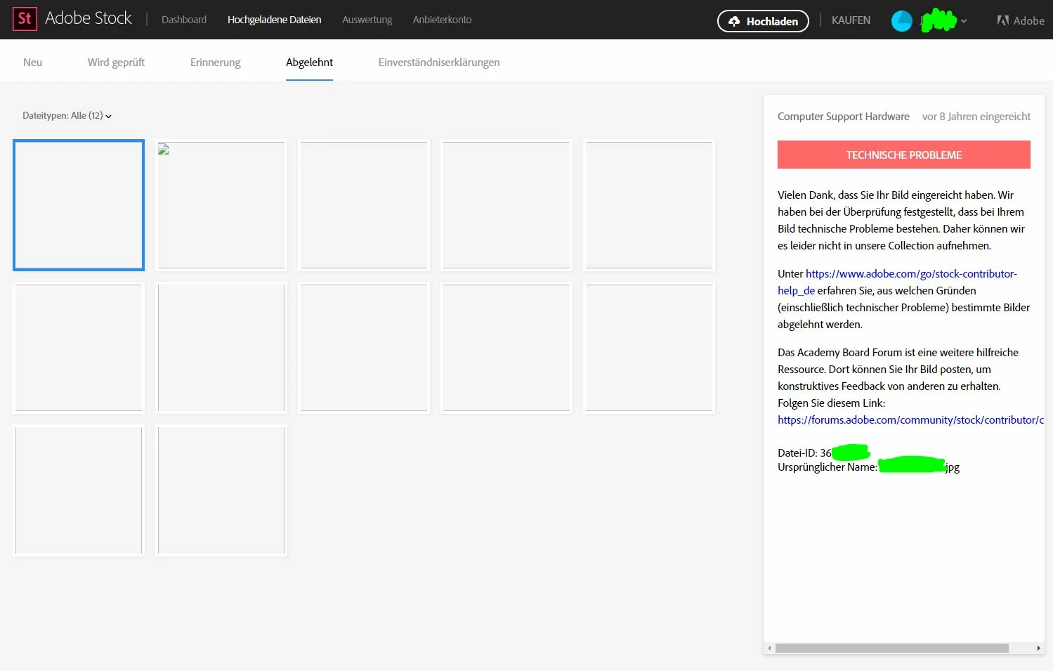 Now I wanted to check back in and all pictures were rejected. But they don't even show. It has the broken image thumbnail icon.