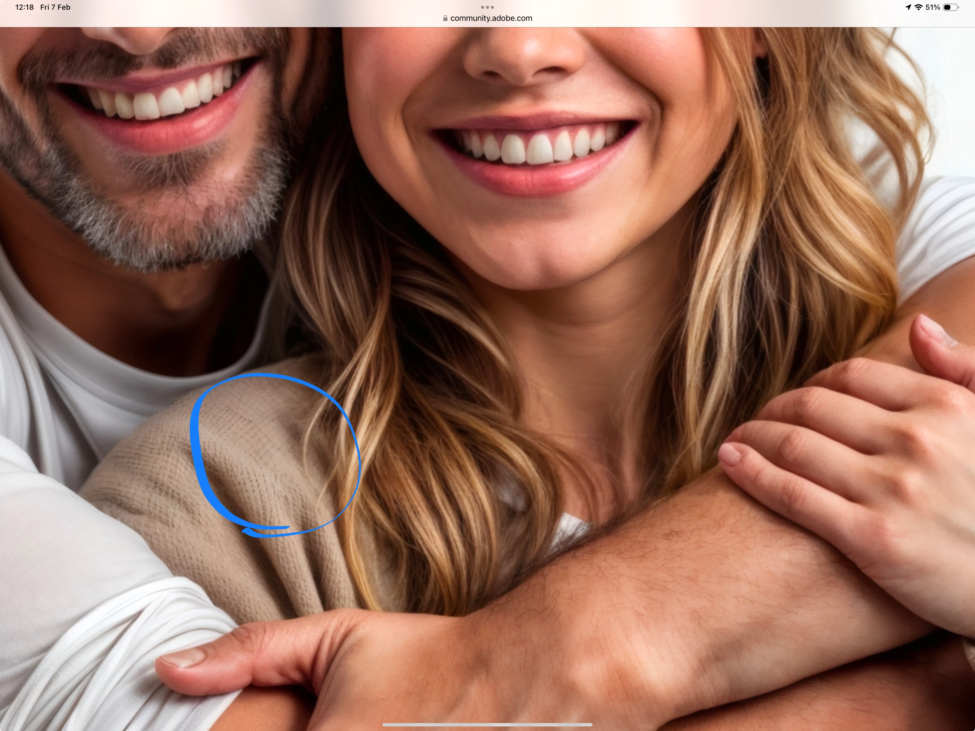 Every now and then, if you're lucky, AI will result in people with perfect or near-perfect irises, teeth, and maybe even ears. Touch them up if necessary, select them, copy them, and submit them to your library.
