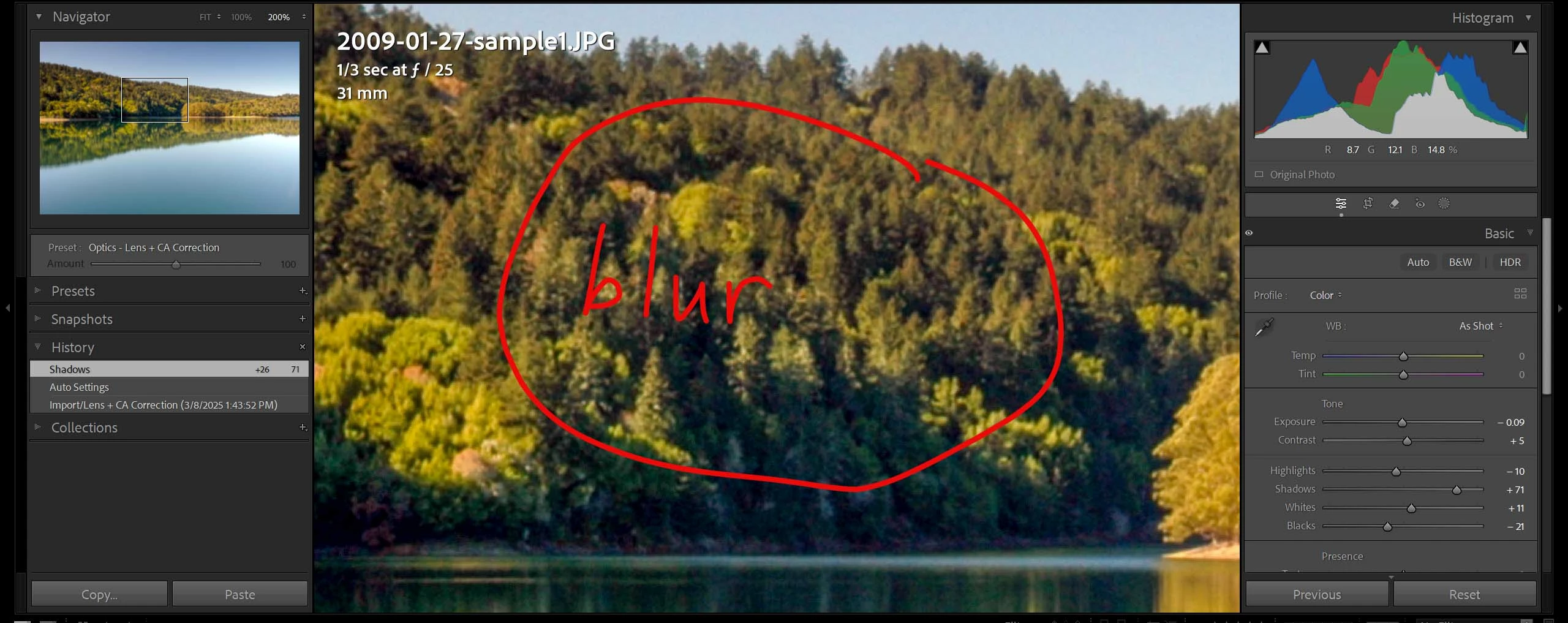 It slightly underexposed in the shadows, however the main issue is that zoomed in even just a bit, the tree line is blurry. The 1/3 second shutter speed may have been cause for this, as few people can hold a camera steady for that long. The very narrow f-stop, f25, wasn't really necessary for such a landscape scene. Should have been more like f8 or f10.