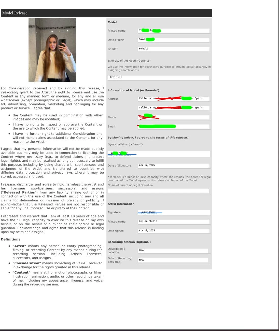 I have already received 7 rejections related to the model release. I am filling them out in full accordance with all the rules provided on Adobe’s website. I don't understand what the issue might be. Could you please help me figure this out?