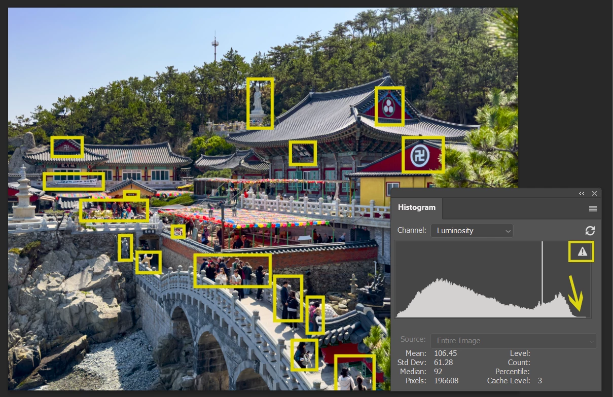 In addition, the Histogram Panel shows your highlights are clipped. Clipping means those pixel details are lost & can't be recovered. It's a nice photo for personal use. But it's not suitable for use in commercial advertising. And that's why customers come to Stock.