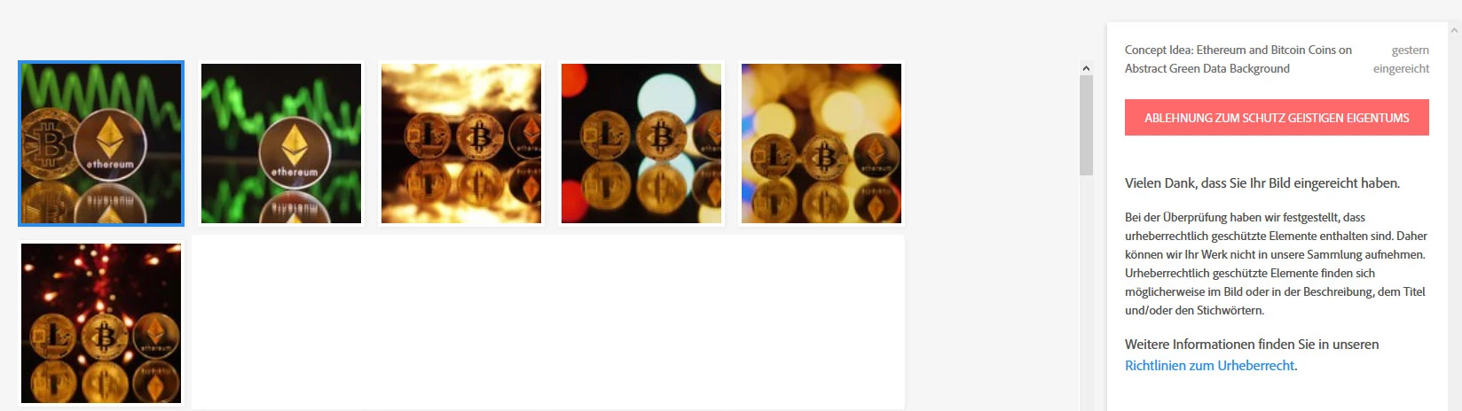 But the videos with Ethereum and Litecoin coins are not accepted because of "intellectual property".