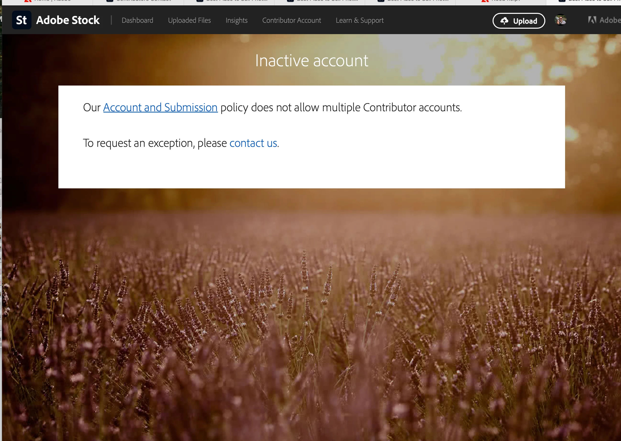 Like many other folks when I try to apply for stock contributor program to sell images I recieve a message that says I have multiple accounts. I know I'm receiving this message in error as I've gone through all the steps and verified my email is the only one associated with my phone number. I reached out to Adobe Support via email in July 2025 but have frustratingly have not heard back as of October 2025. I did recieve the generic template 'steps to follow' that I've already taken. I've also tried calling Adobe's help number but they say they cannot access that part of Adobe. Is there any hope to get this resovled? I have portfolios on multiple other sites and would love to contribute with Adobe as well.