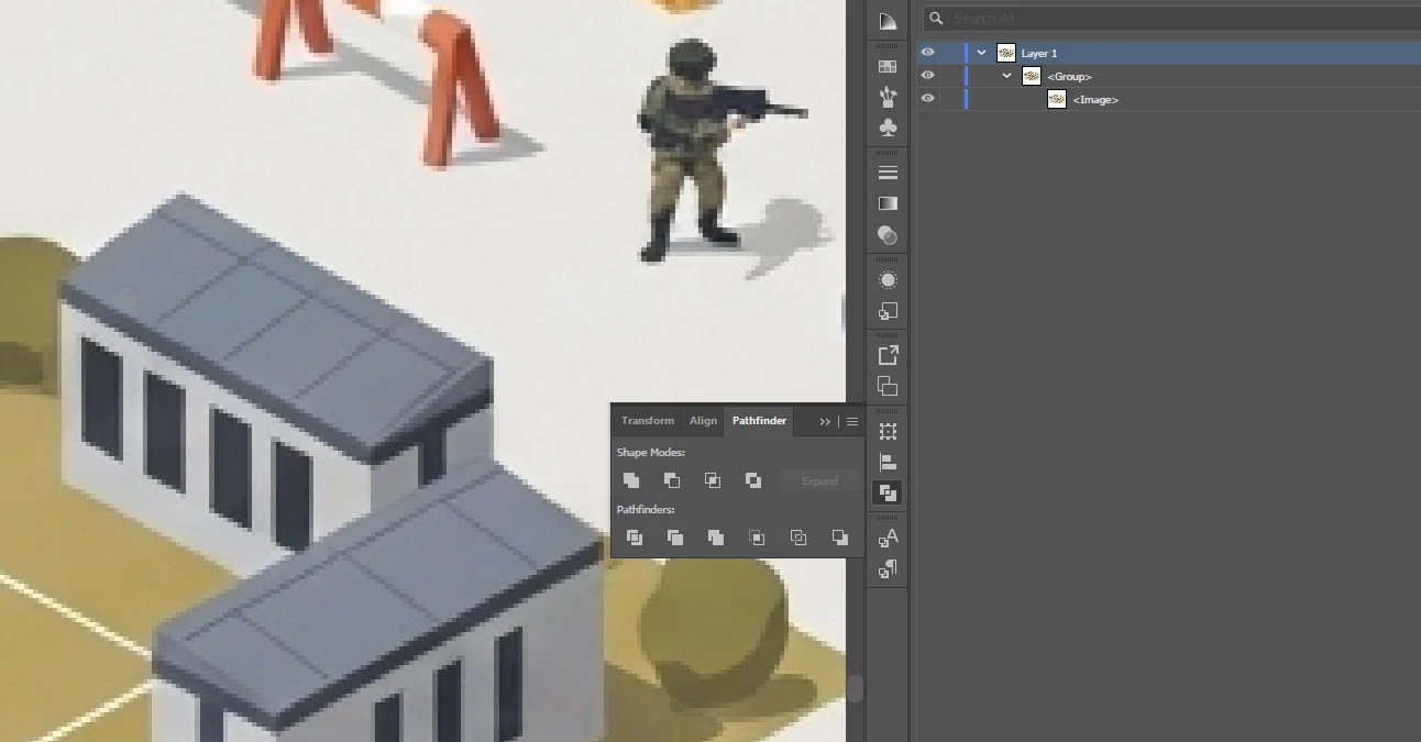 I downloaded the vector version of image #1961622616 - Isometric Military Base Illustration with Vehicles and Training Grounds.