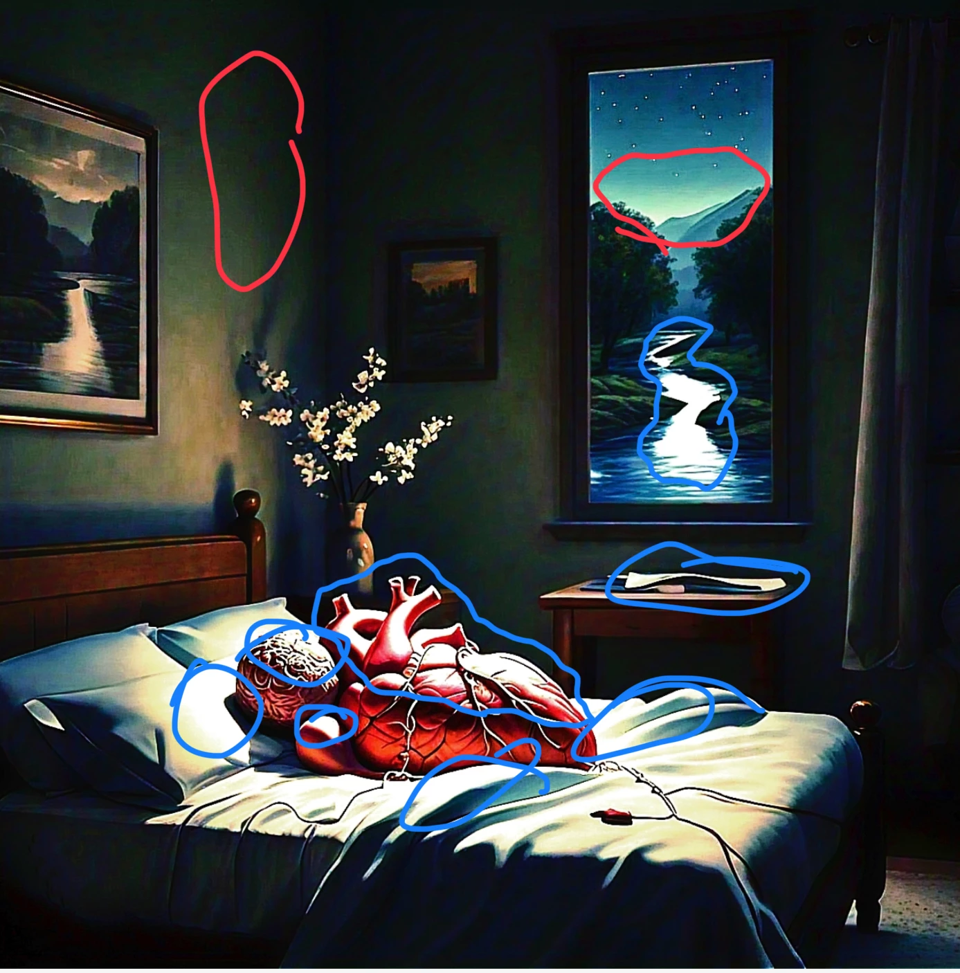 In addition to what @Jill_C said: Red: colour noise and compression artefacts. The image is simply full with these defects, so they are not limited to the marked areas.