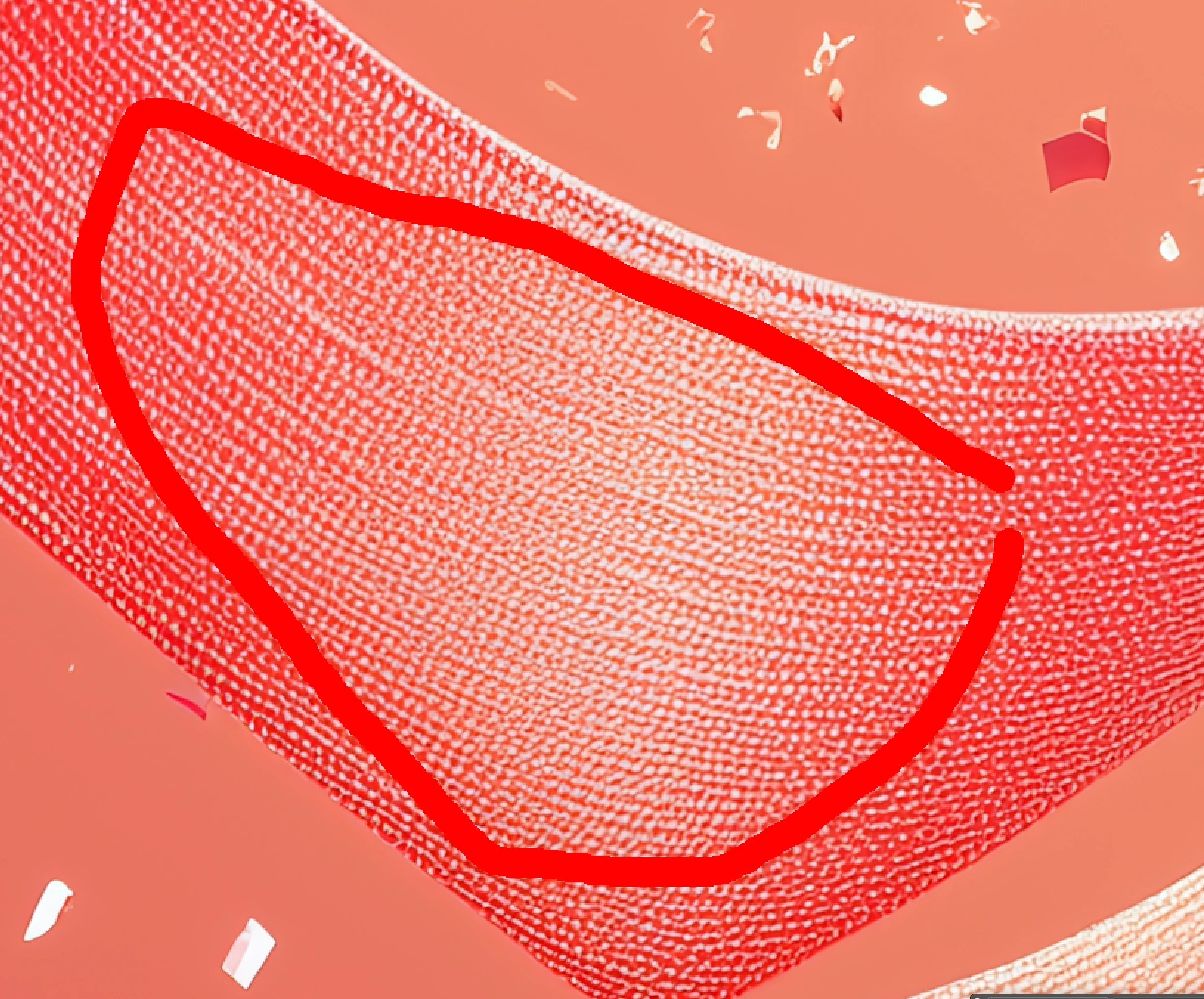I know this is an illustration, but fabric simply doesn't look like this, with such a random pattern. One would either see solid but slightly texture red, and relatively pure but textured white highlights.