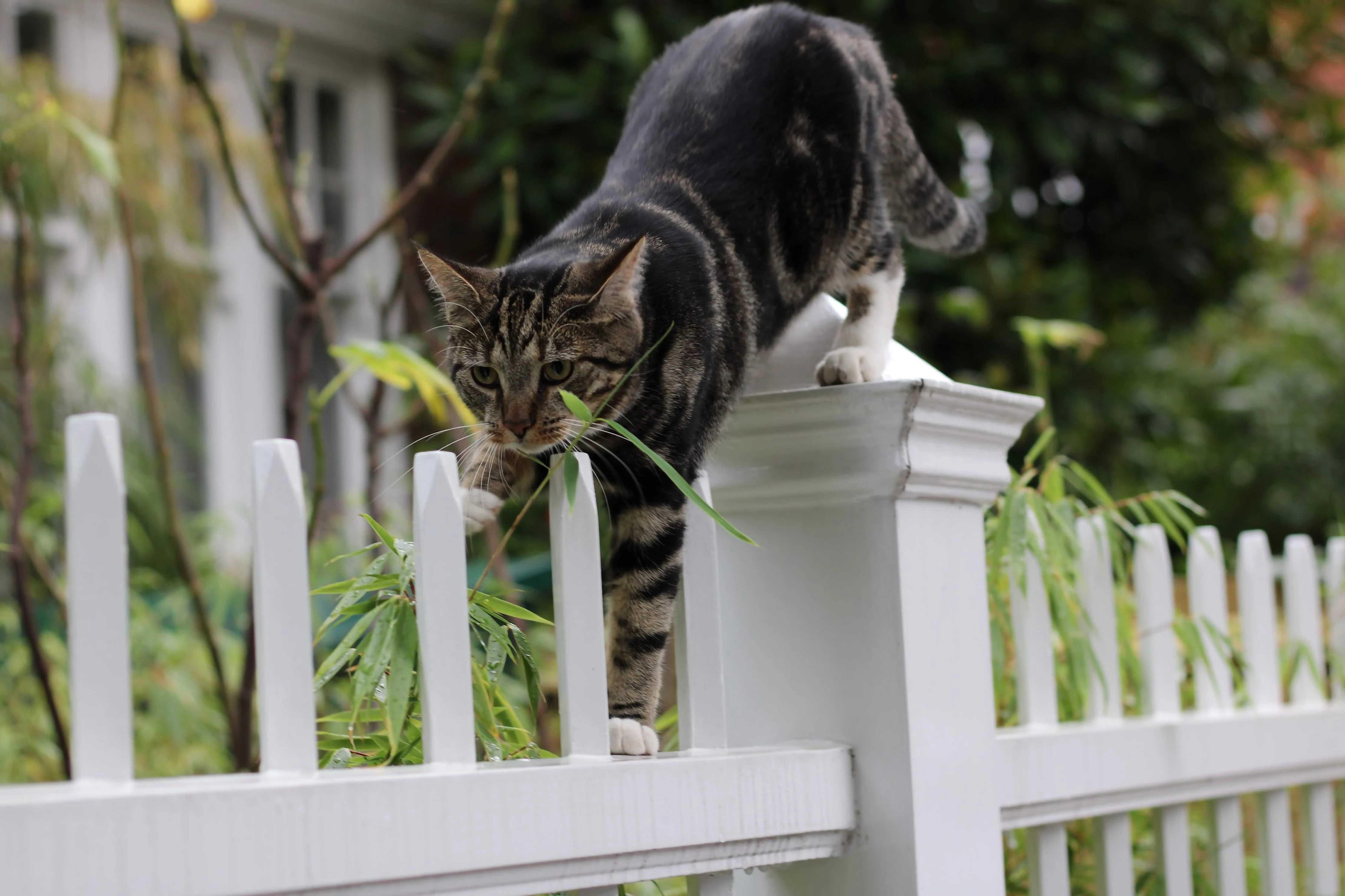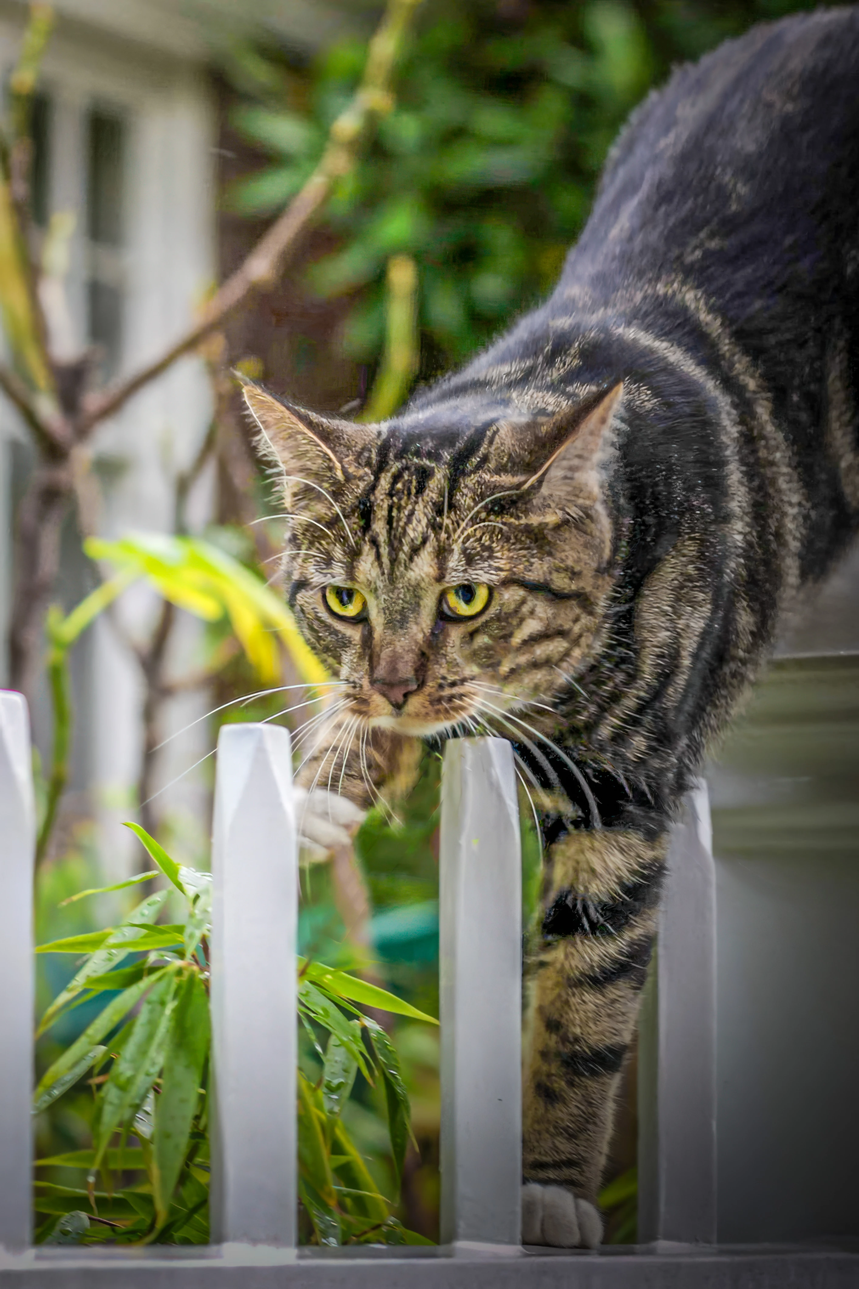 The cat photo is underexposed, cropped too close to the top, the photo (fence) is not straight and the photo needs sharpening.