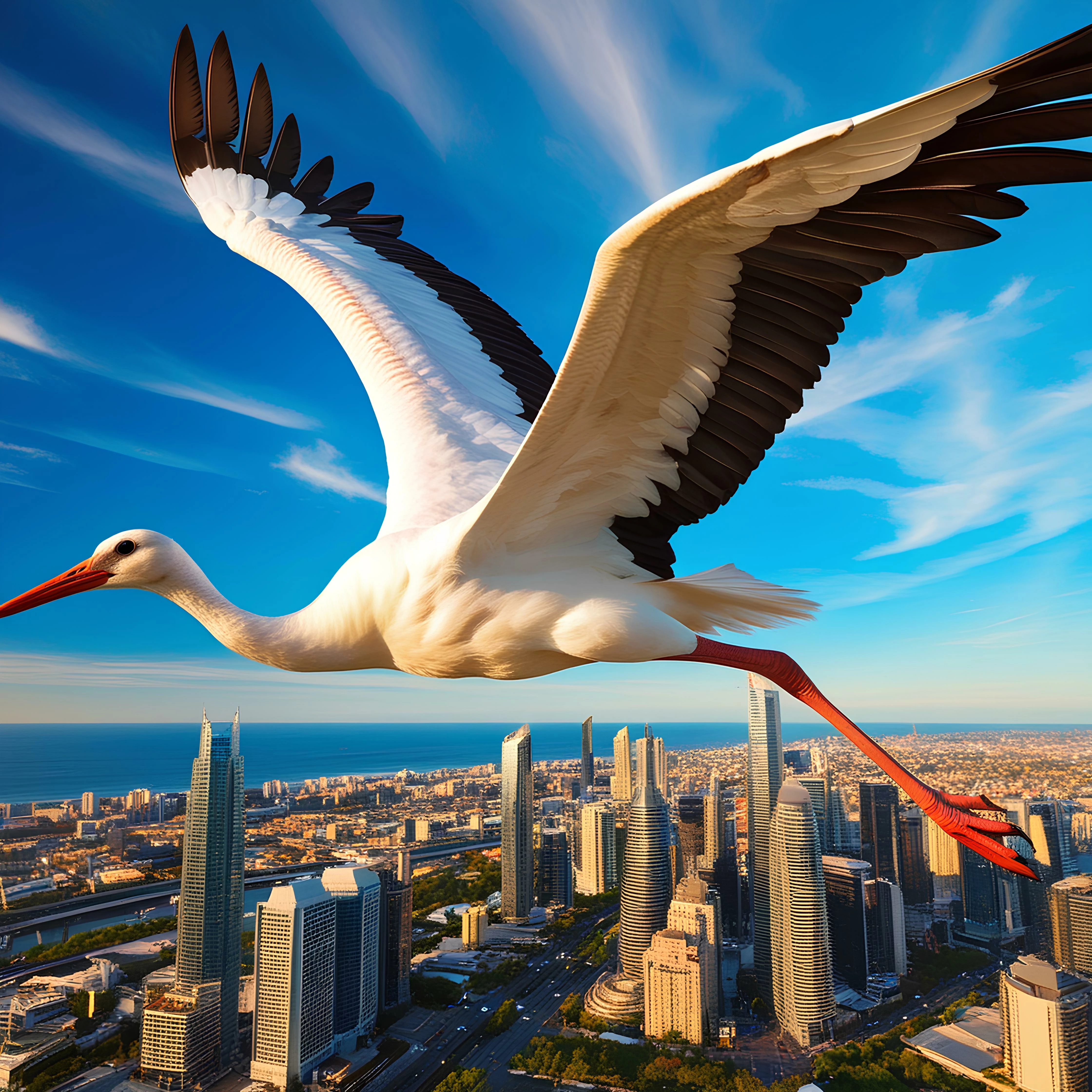 The bird is not completely in the frame, and all of the buildings are poorly drawn.