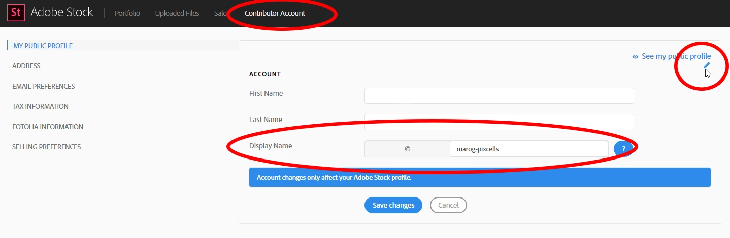 I would like to have another name (not my first name) in the copyright of my uploaded stock photos.