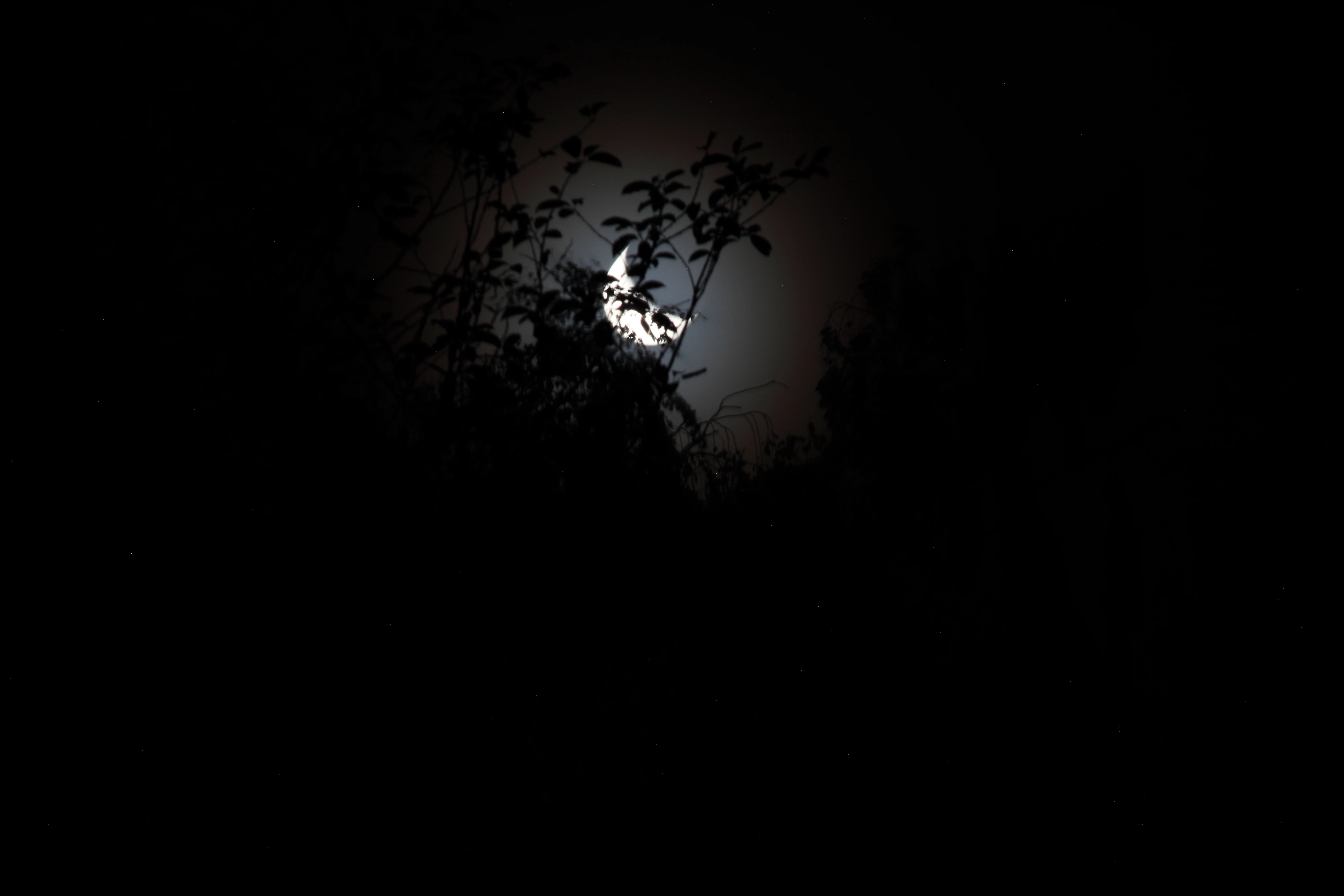 The second: the image is out of focus. Neither the moon nor the plants are in focus or sharp.