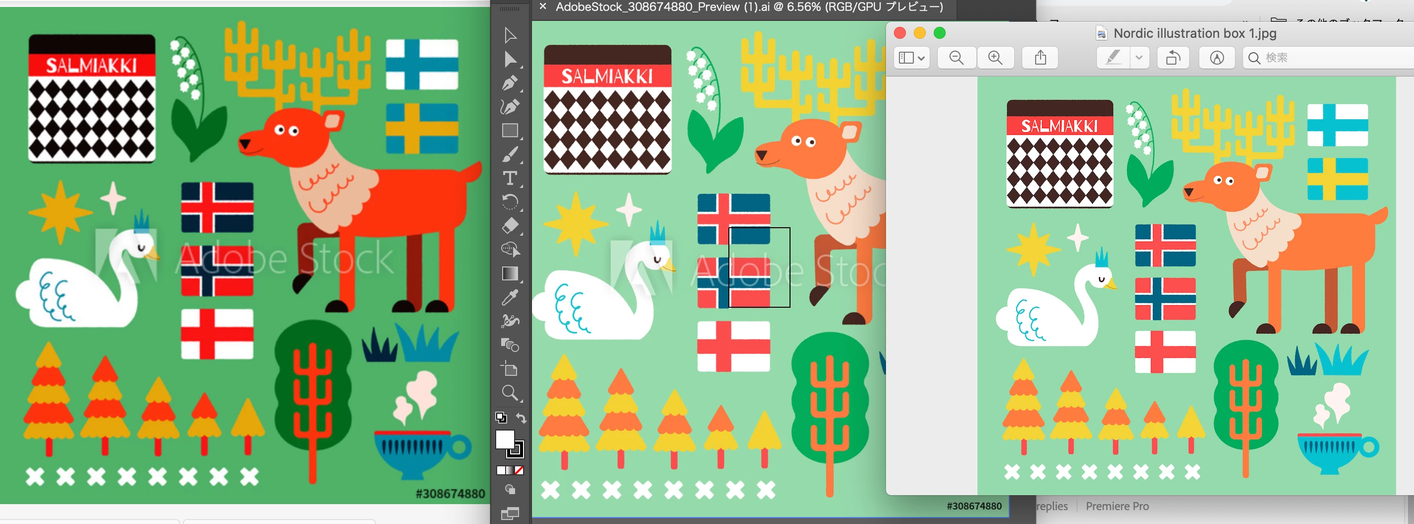The picture is one sample of differences of color. The left is .ai file which I upload to Adobe Stock, the center is downloaded preview from Adobe Stock and the right is the original color of .jpeg file,t
