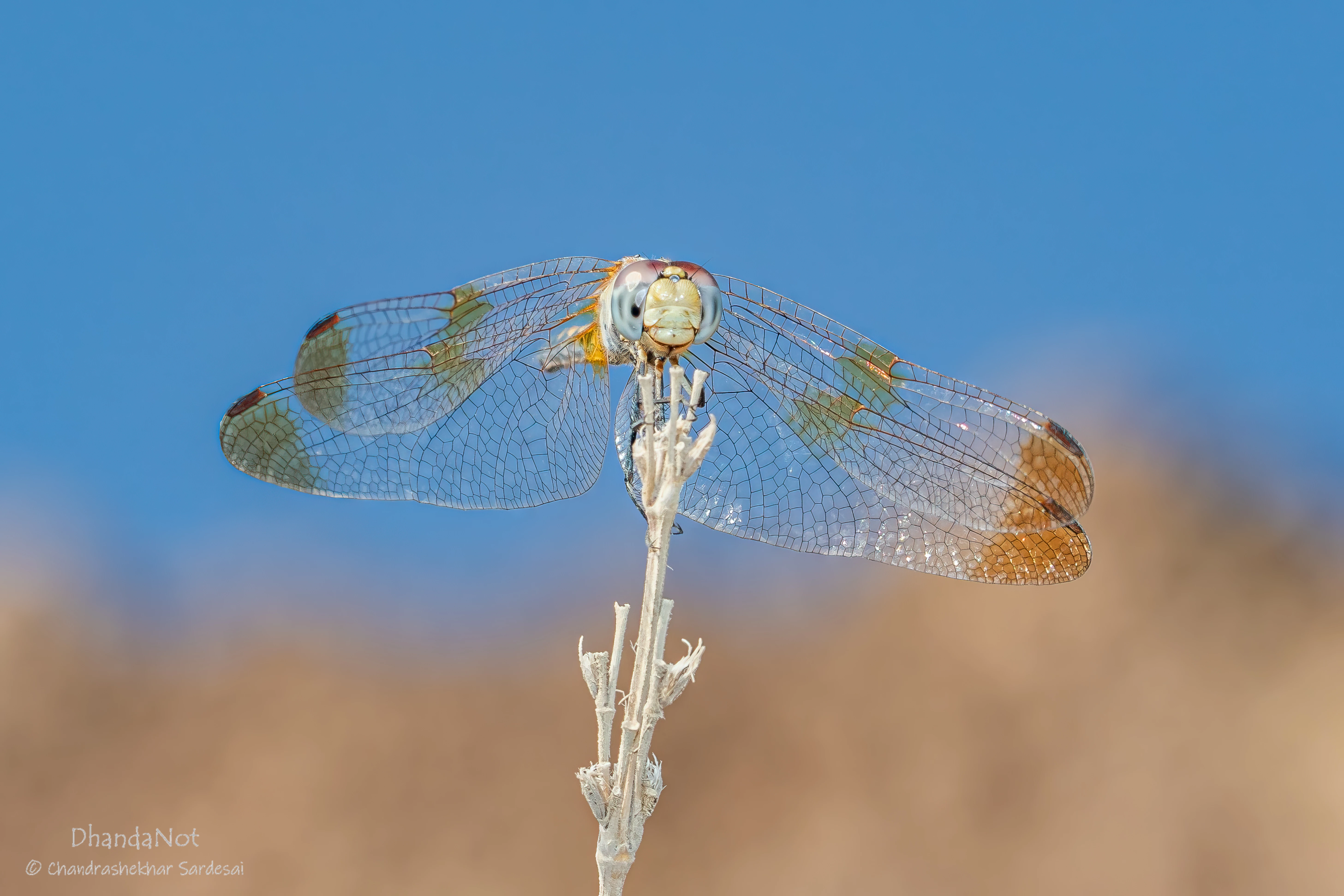 The insect is quite beautiful, but the unfocused branch directly in front of it is distracting and overexposed and there is chromatic aberration nearby.