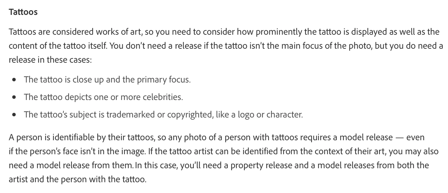 If the tattoos did, however, trigger the refusal, you would also have needed a property release from the tattoo artist.