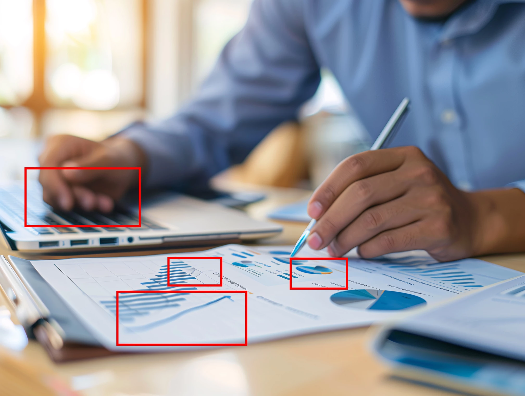 Here he's missing a pinky finger and the charts on the paper are poorly drawn.