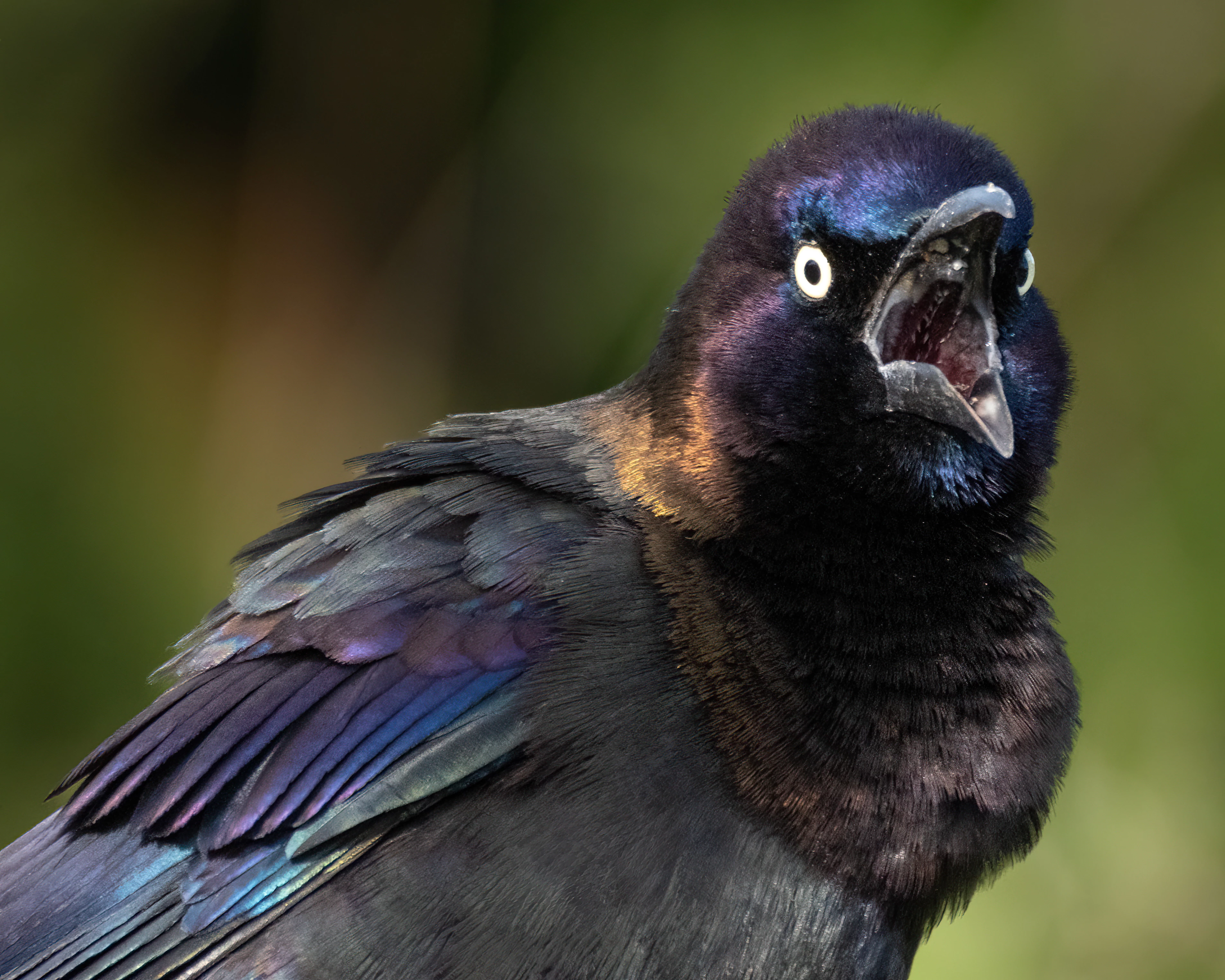 I'm having a very mixed acceptance rate with closeups pix of birds with intentionally blurred backgrounds. Here the heron is in good focus and the background is smoothly blurred. f/11, 1/1000, ISO 800, but rejected for "technical reasons". OTOH, the angry looking grackle was accepted. Is the heron picture too dark, not enough feeling of separation, not enough color? Comments appreciated 🙂