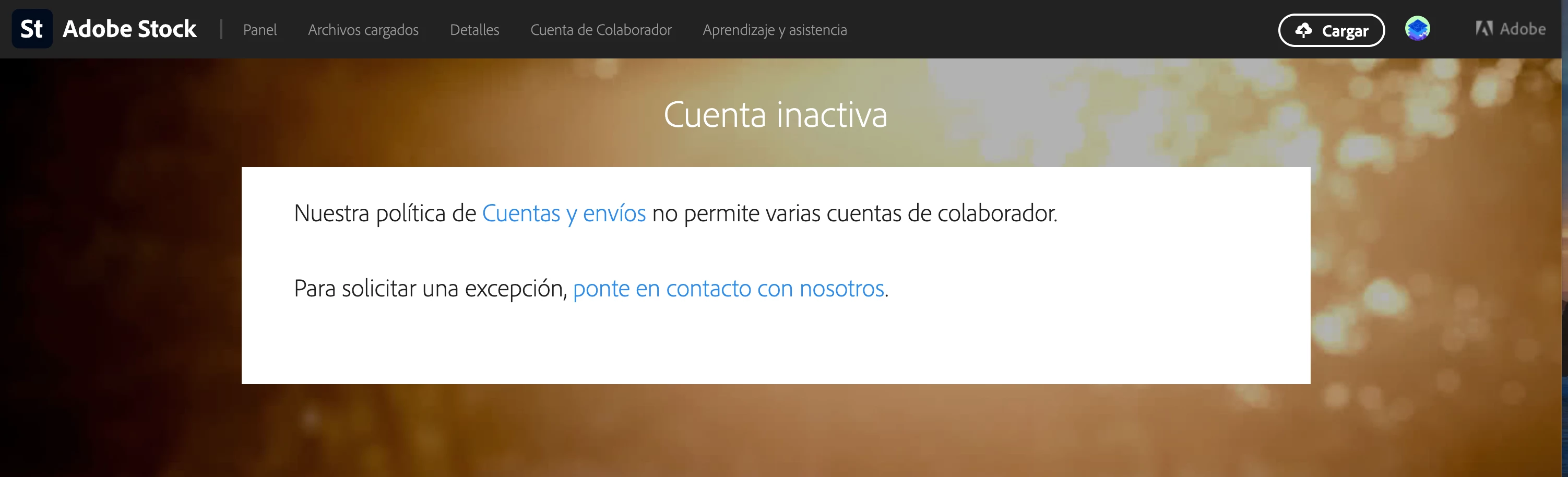 Buenas, tengo mi plan anual de Creative Cloud y estoy intentando crear una cuenta de colaborador para poder vender fotografías en Adobe Stock, y no me permite crear la cuenta. ¿Pueden ayudarme?
