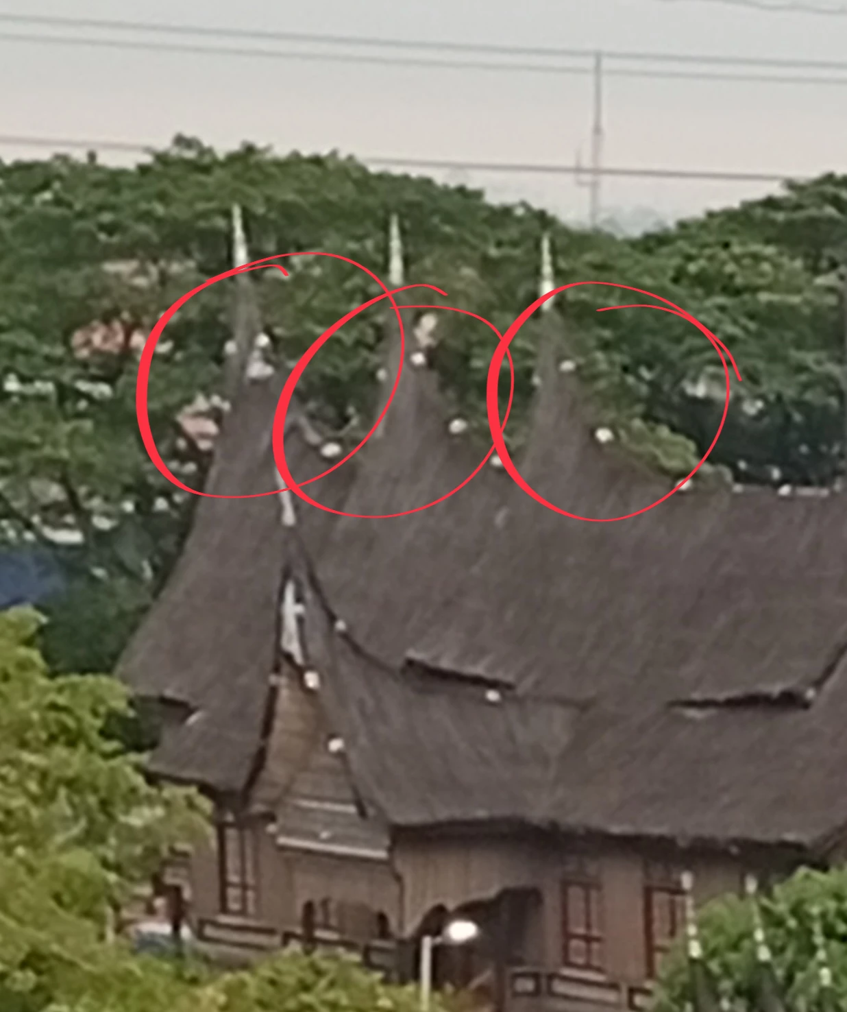 This appears to be a mobile phone image due to the lack of detail as a result of the small sensor. Where there should be sharp detail there is instead just blobs of color. The sky is also overexposed, and as @RALPH_L indicated, the distracting wires could have been edited out.