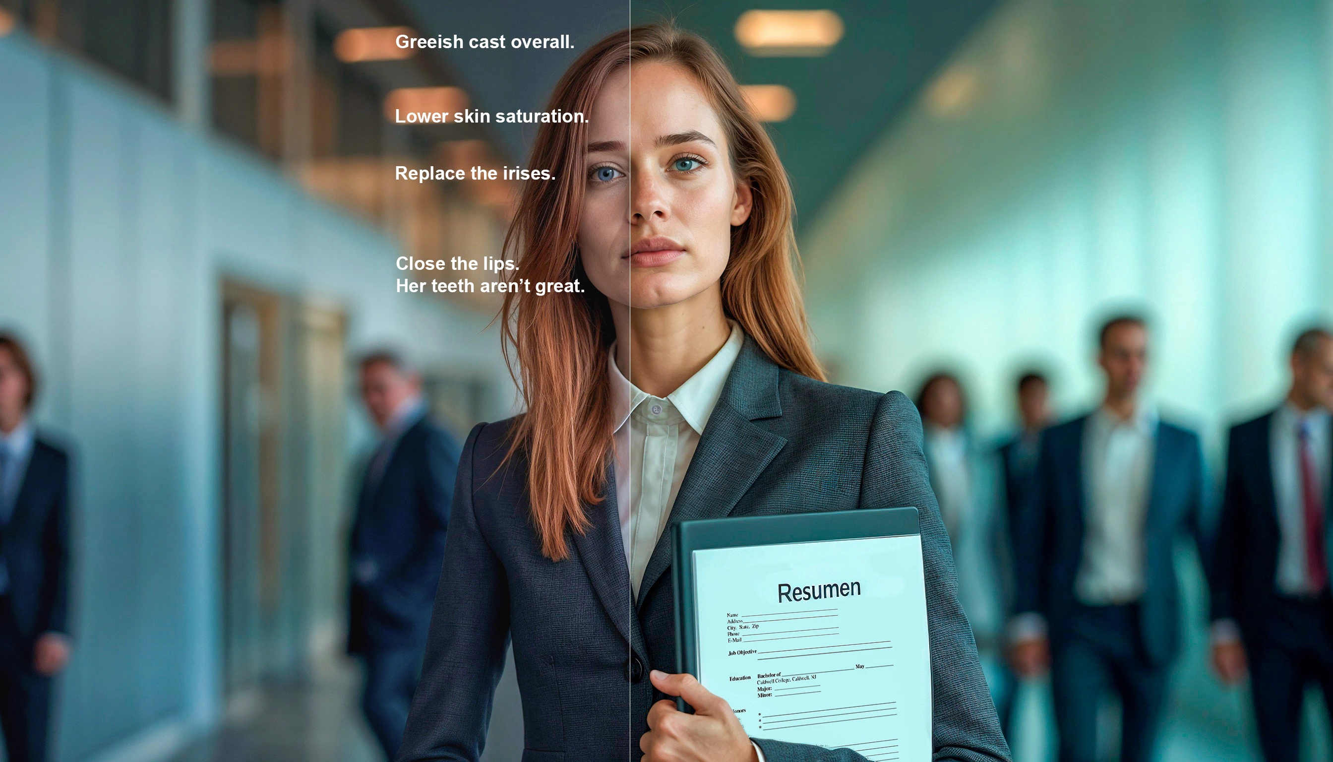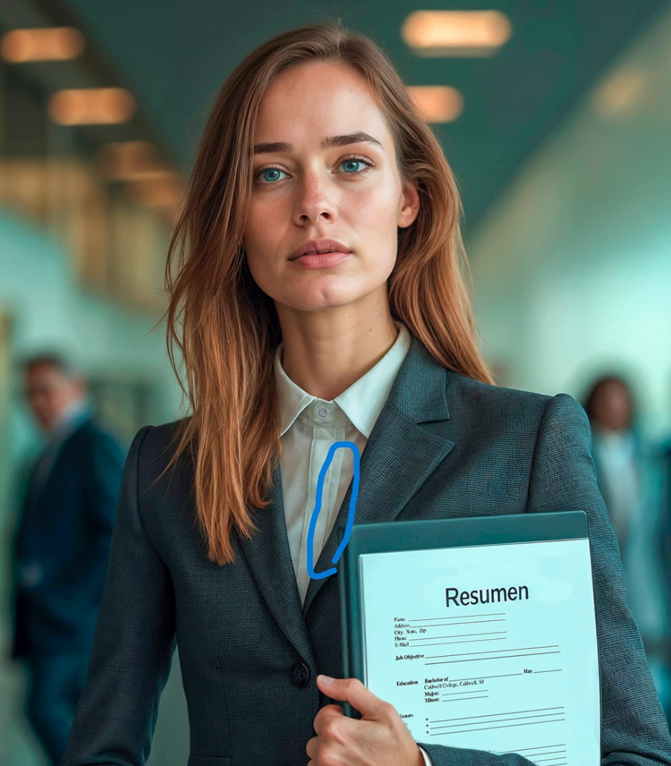 There is more than the shirt. When showing something written, make sure that it makes sense. Paper is normally white and the texture on the jacket is crooked. I would really check the white balance for this picture.