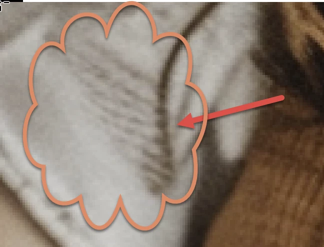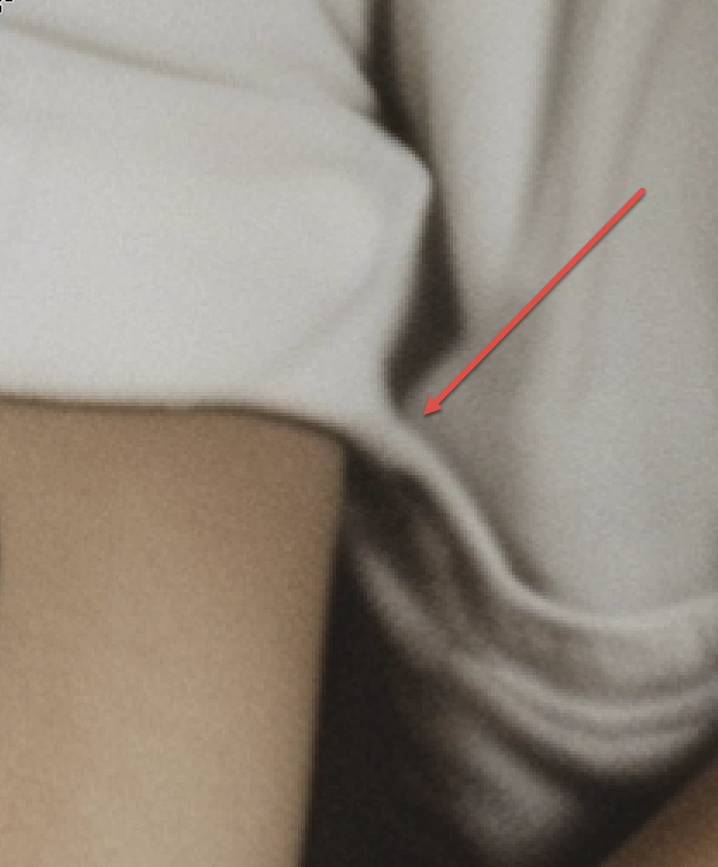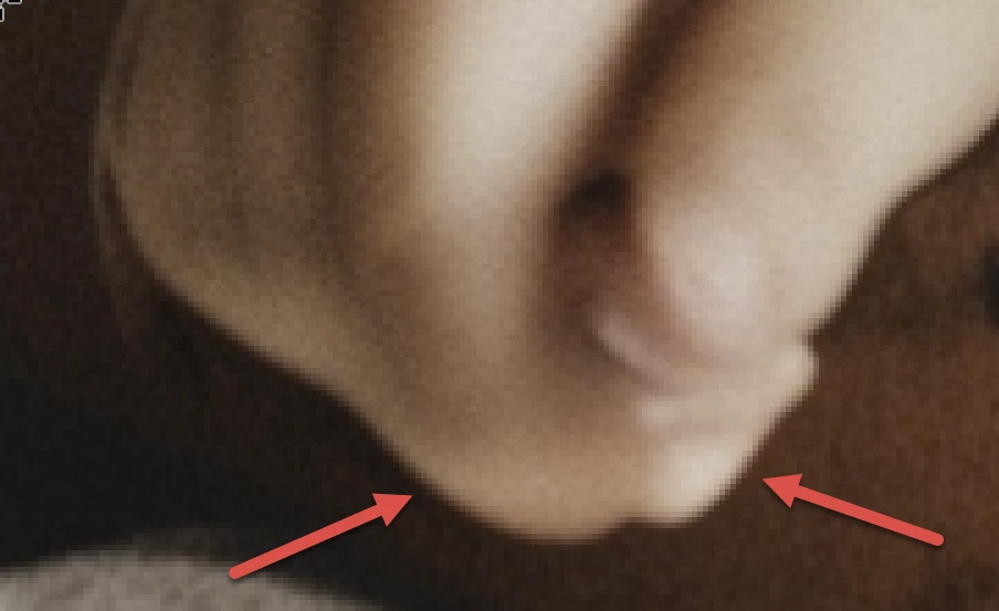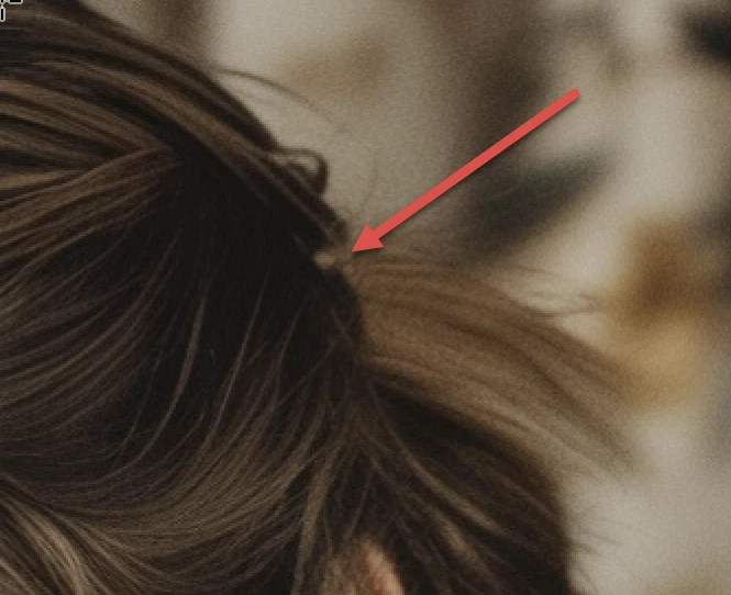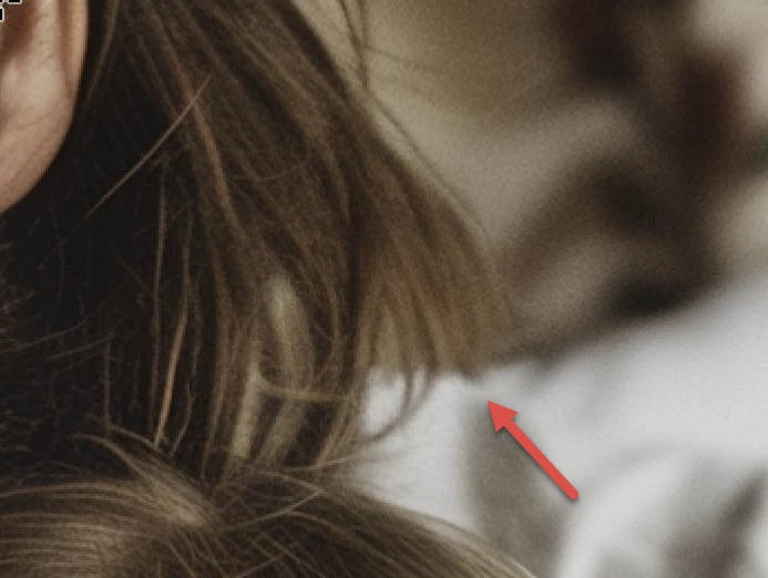 The girl's hair (arrow) and the sleeves merge.