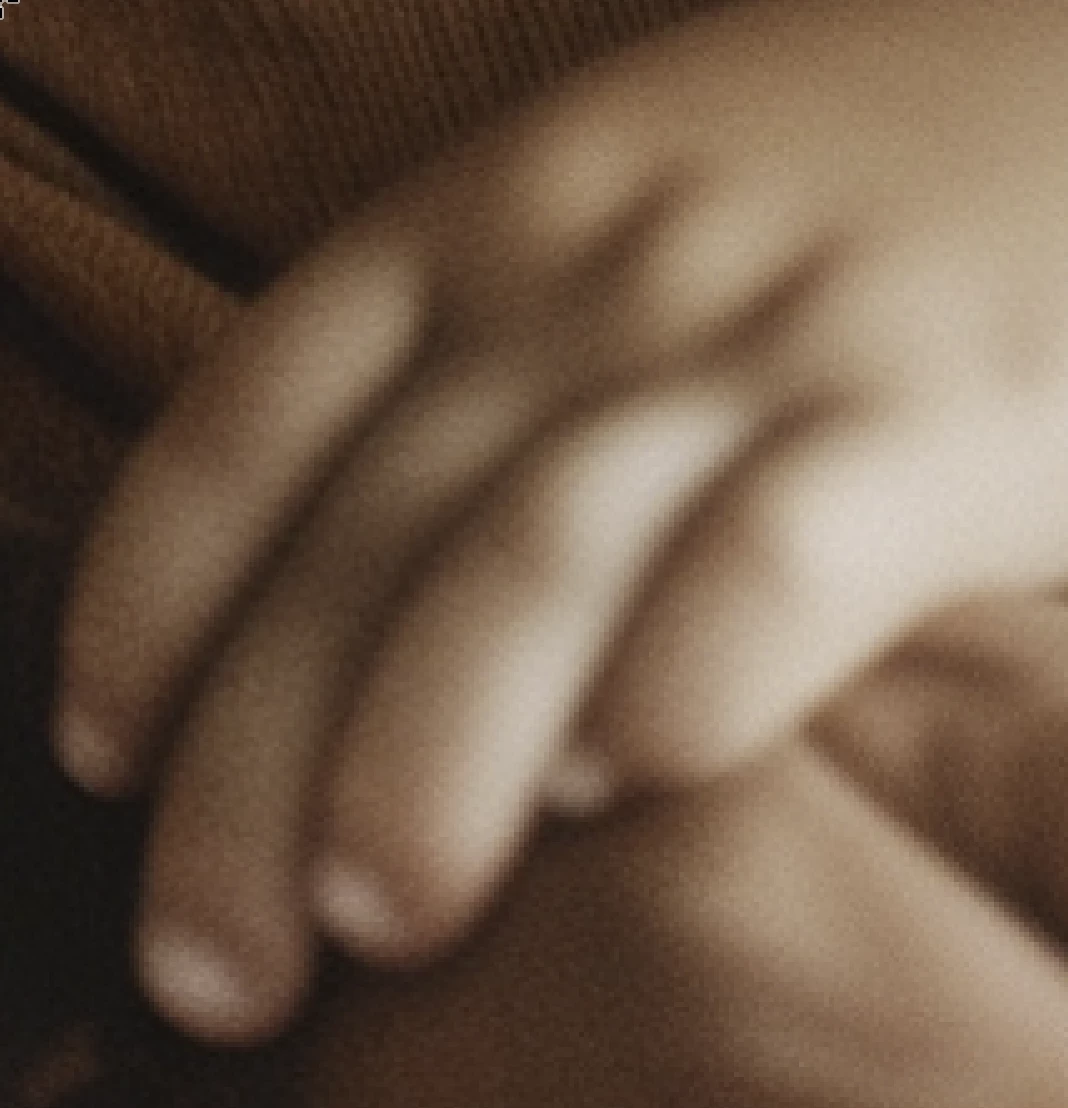 The poor girl's fingers have merged, and the fingernails appear to be peculiar.