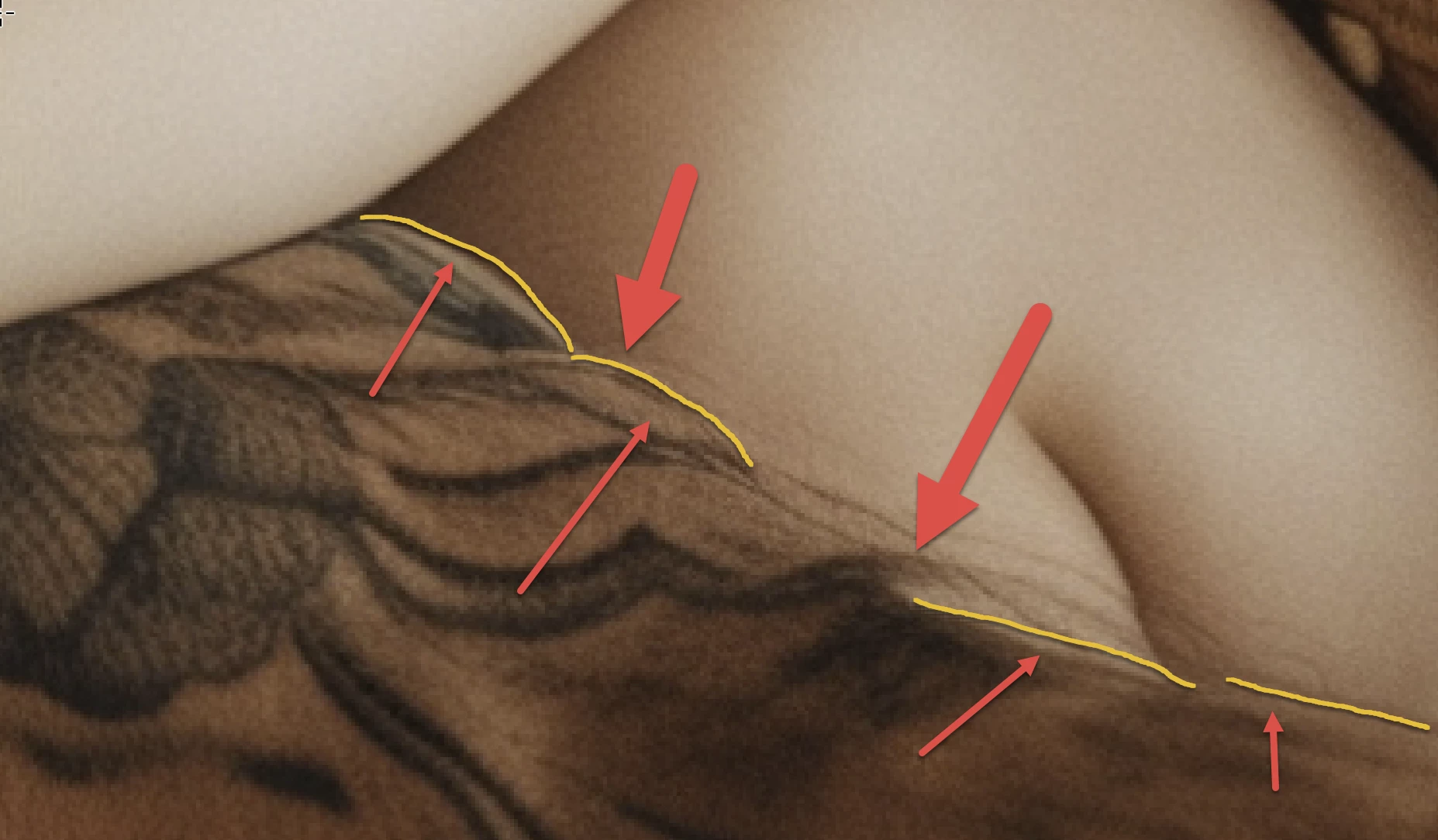 The tattoo grows hair and weird shape of the arm: