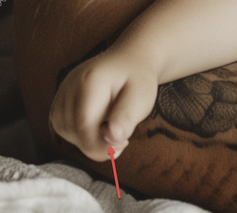 In addition, she seems to hold someone's finger.
