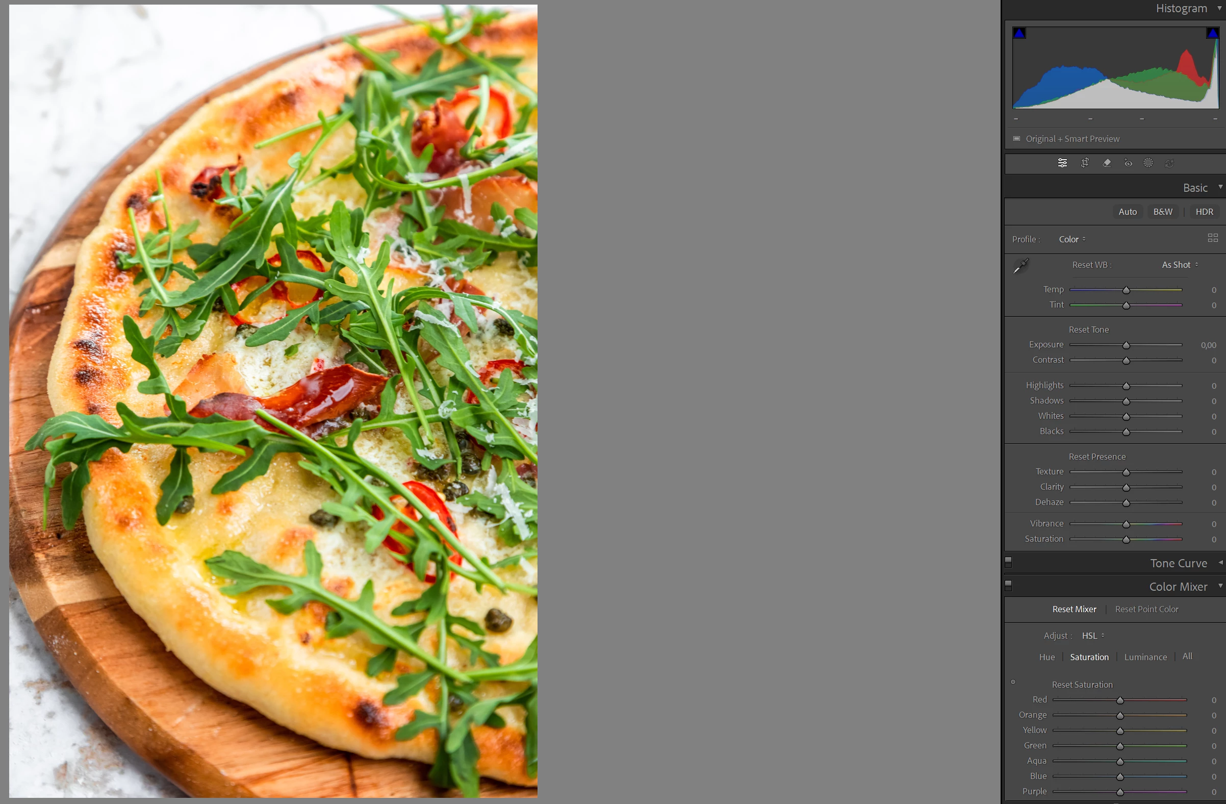 The photo and histogram are better after adjusting the lighting to bring back the midtones and sharpening the photo. I sharpened with Topaz Photo AI.