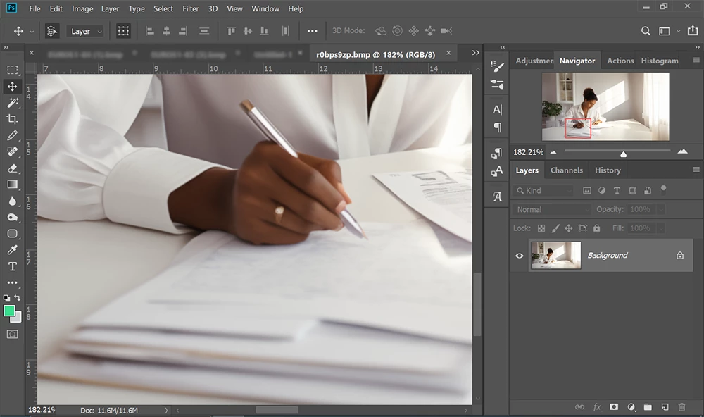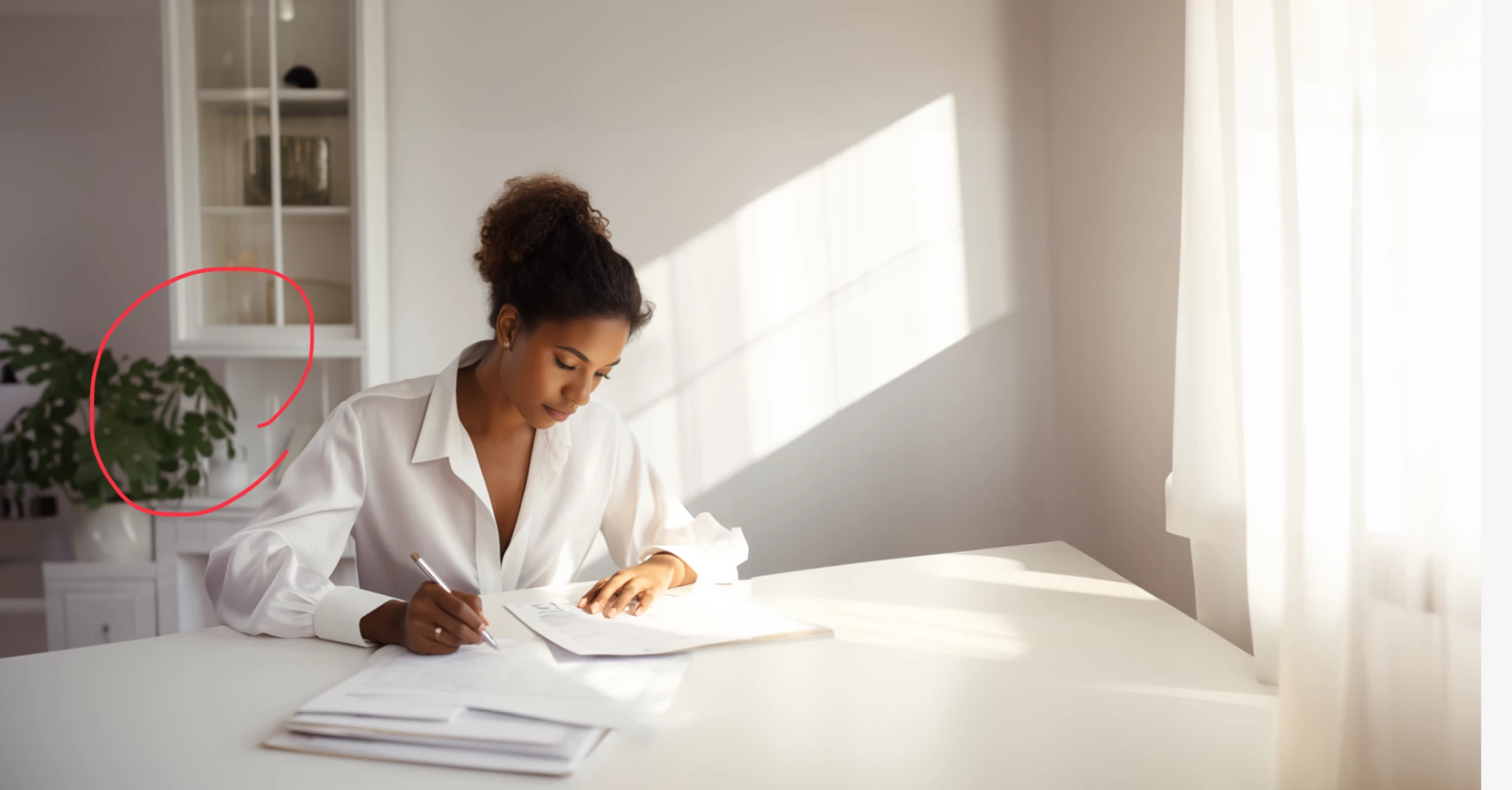 The fingers on the right hand are malformed. The earring and ring could be removed as they do not appear to be actually jewelry but rought representations of jewelry. The facial features (ears, eyes, nose mouth are unrealistic when zoomed in. Even facial restoration software would have difficulty fixing these issues, as it works best when both eyes are clearly visible. Facial restoration software has a tough time with profiles and three-quarter profiles.