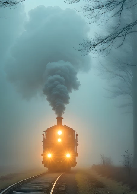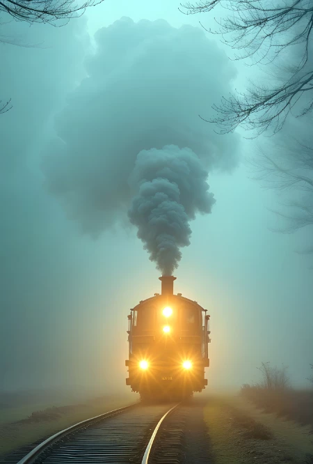 The image is an AI-generated depiction of a vintage steam train moving through a misty forest, with glowing headlights and billowing steam, aiming for a nostalgic and historical vibe. I’ve attached the image below for your review.