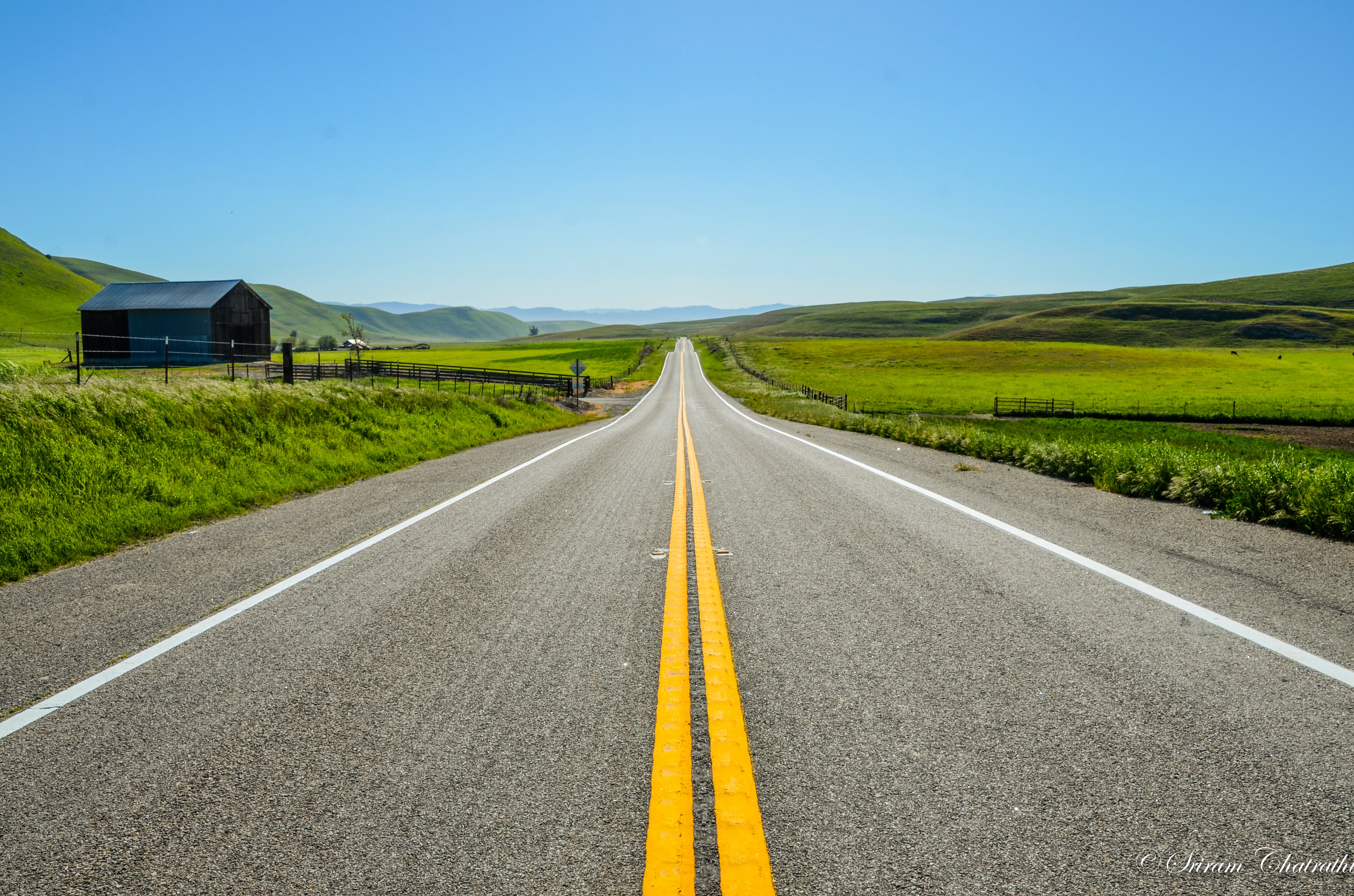 Thank you! That's helpful. I am assuming that the surface of the road (closest to the viewer) is in focus while the rest of the landscape is "soft"?