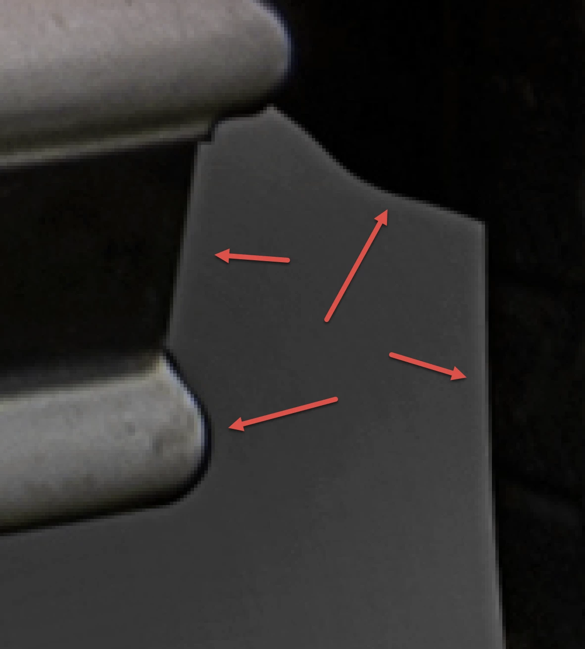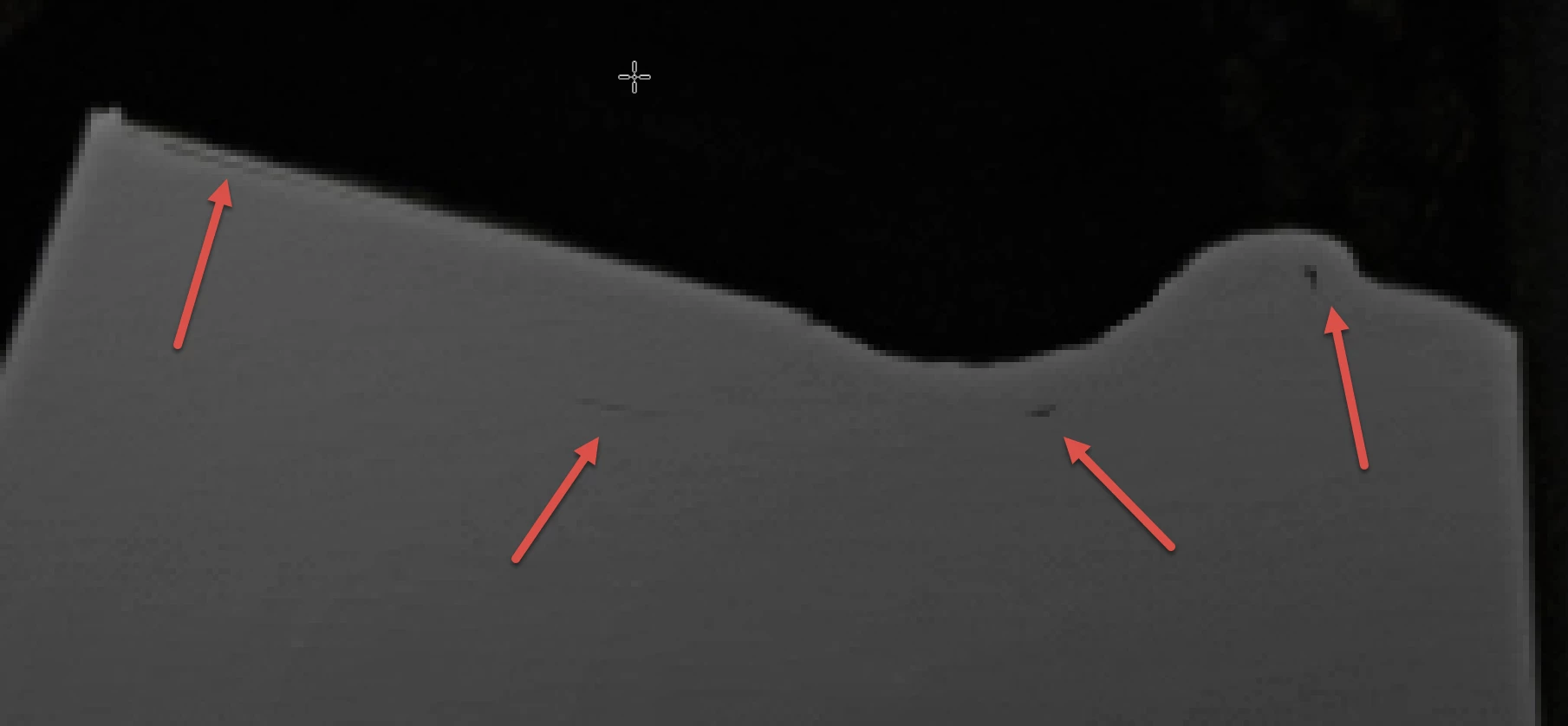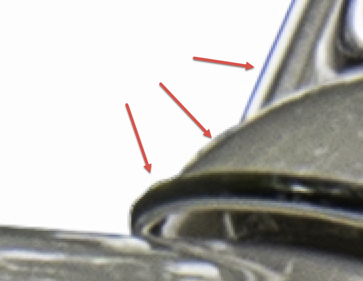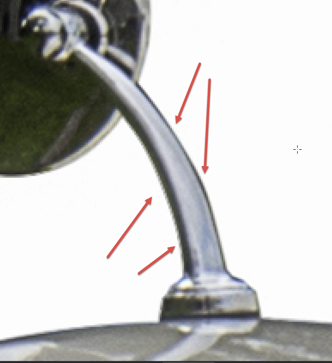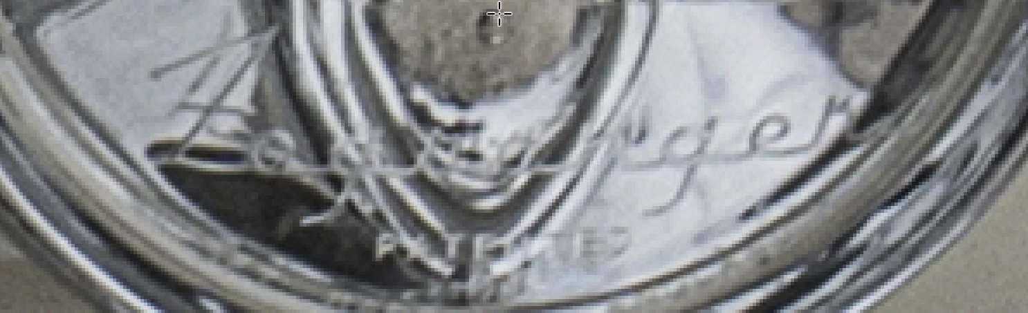 Der Schatten unter dem Wagen ist auch problematisch. Der Verlauf zeigt ebenfalls eine Bänderung, die jedoch nicht so stark ausgeprägt ist wie bei der Ente.