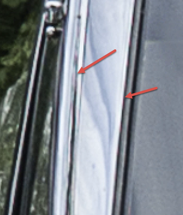 Außerdem gibt es Moiré und chromatische Aberration.