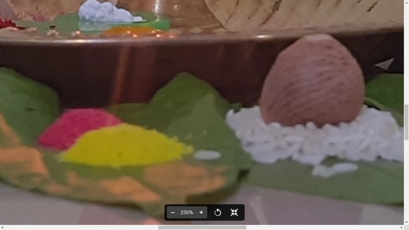 It's looking dull, possibly a little underexposed or cool. Section of the subject is blurry - out of focus. There are grains on the subject - noisy.