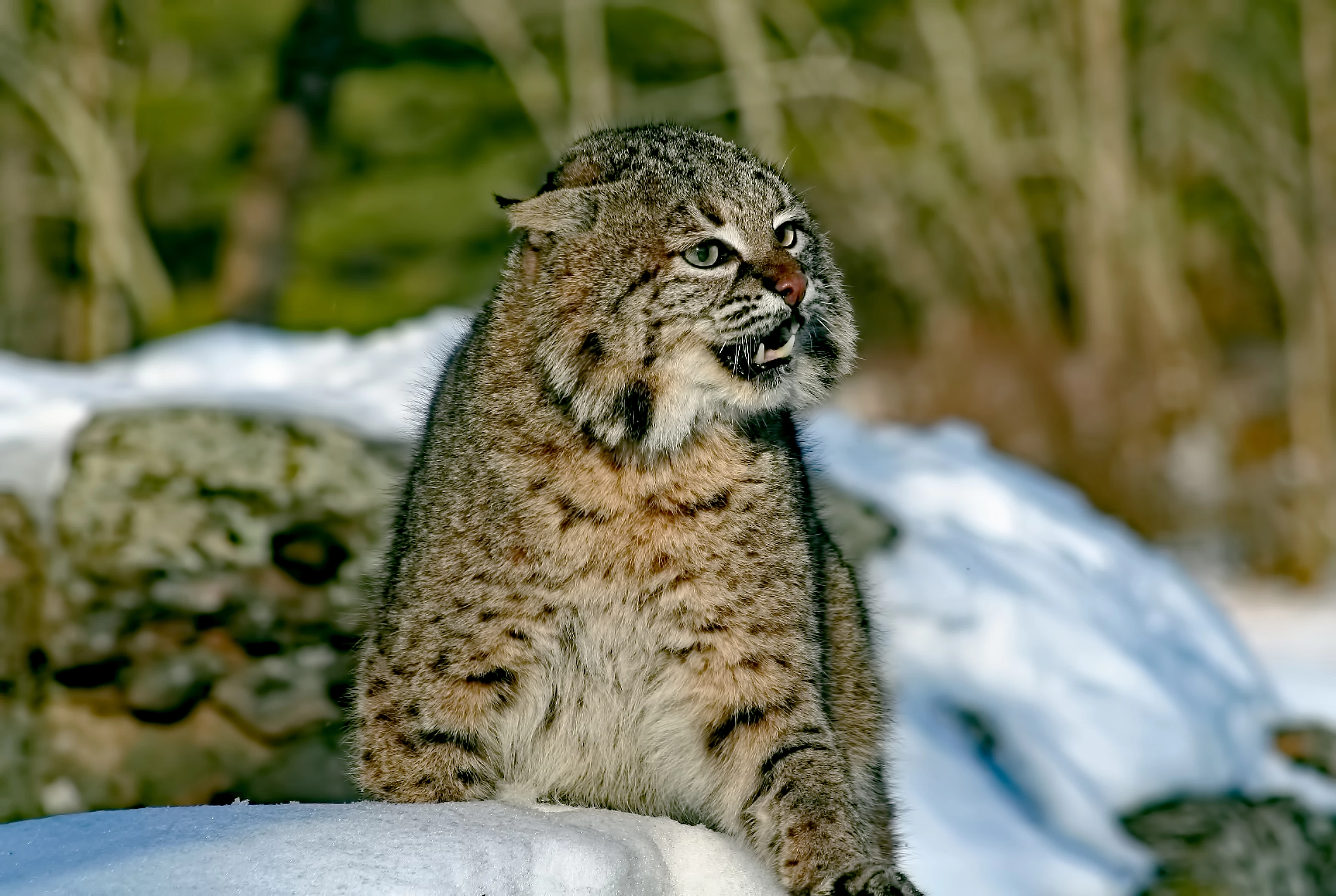 This is a great photo except - The background does have blur, lots of objects and noise. The foreground of snow might also have grain or noise problems. Cat looks very good - some hairs on left might need sharpening. Tough one for me. Good luck. JH