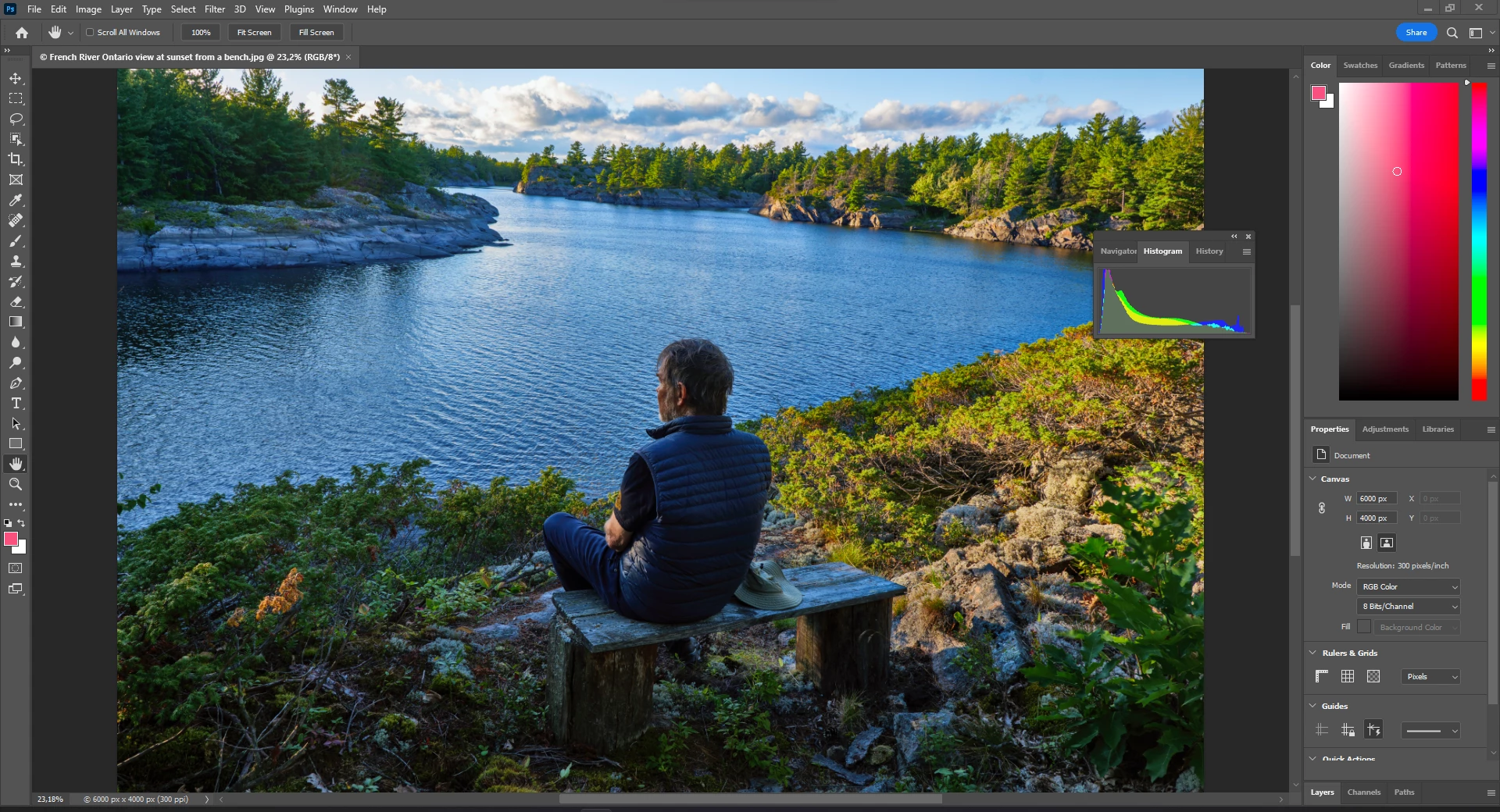 Just another point in the composition. The guy should be looking more into the distance, down the river, rather than across it. It leads the eye out of the frame.