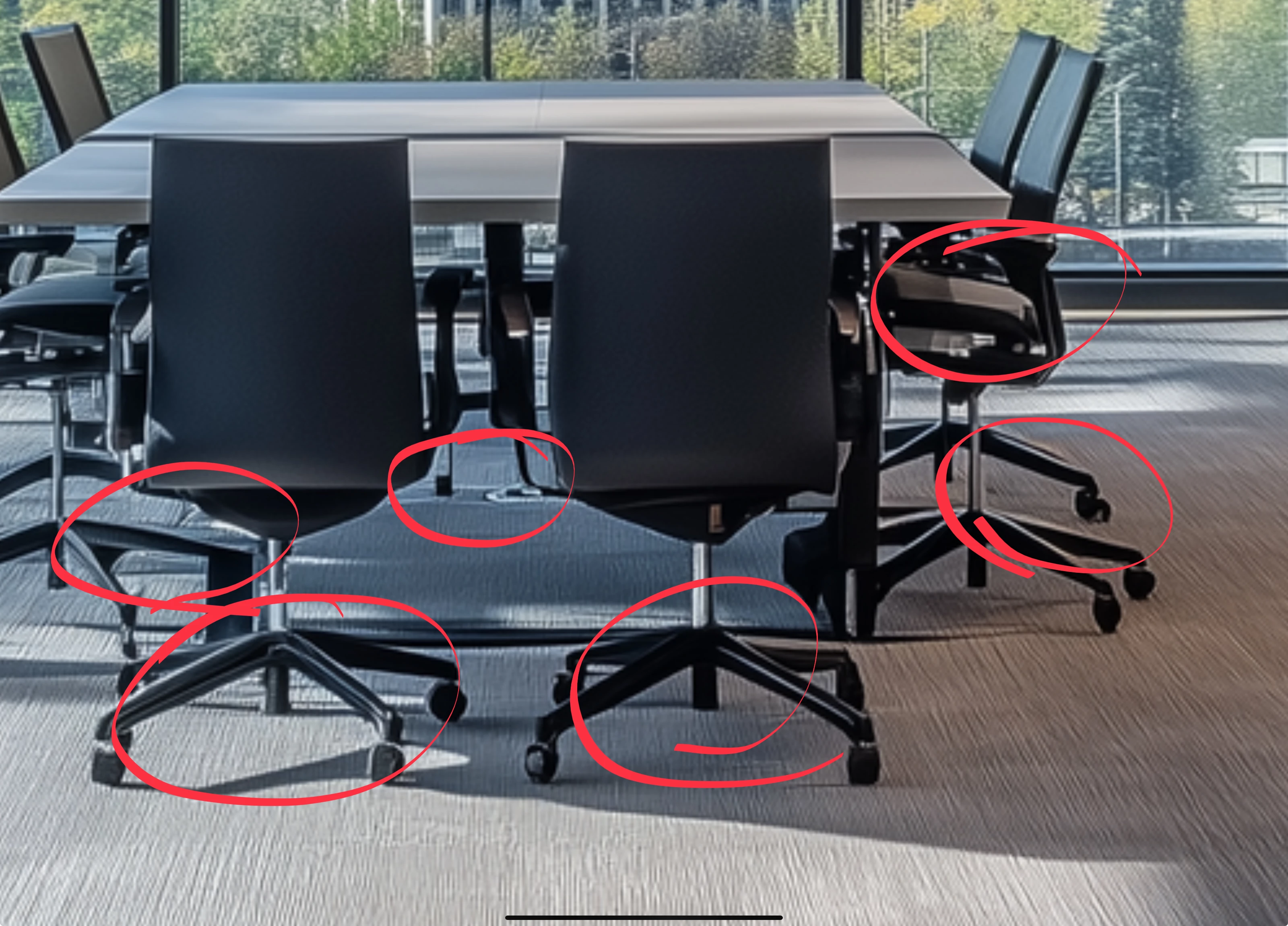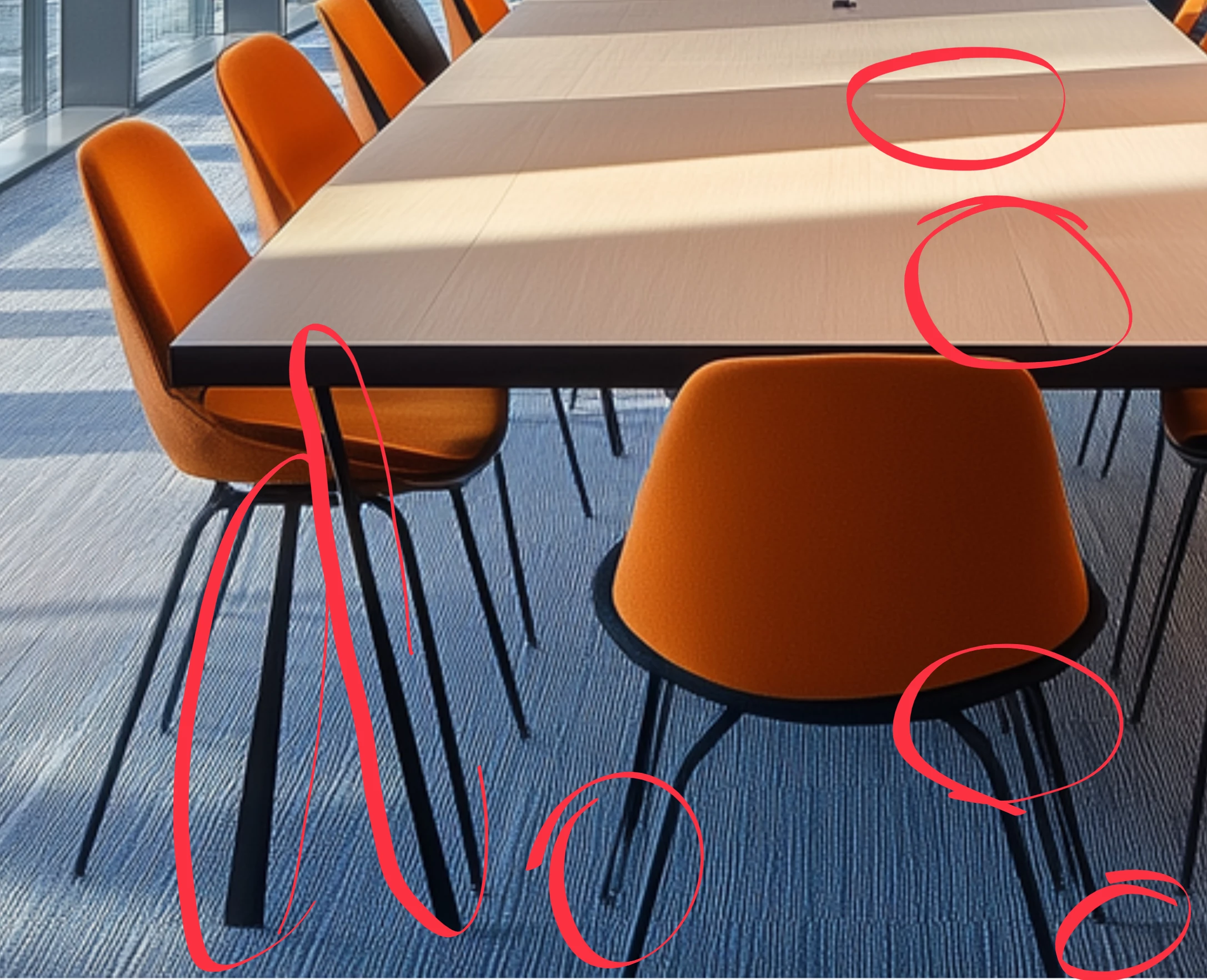 Zoom in 100-200% and inspect every area of your images before uploading. AI frequently messes up chair legs and table legs. Here are a few example of AI drawing errors. There are others.