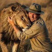 Hard to tell by the thumbnail but it looks that the man with the lion does have only 3 fingers on his hand and the thumb. Pay attention to human fingers on AI generated images because AI struggle with these at the moment.
