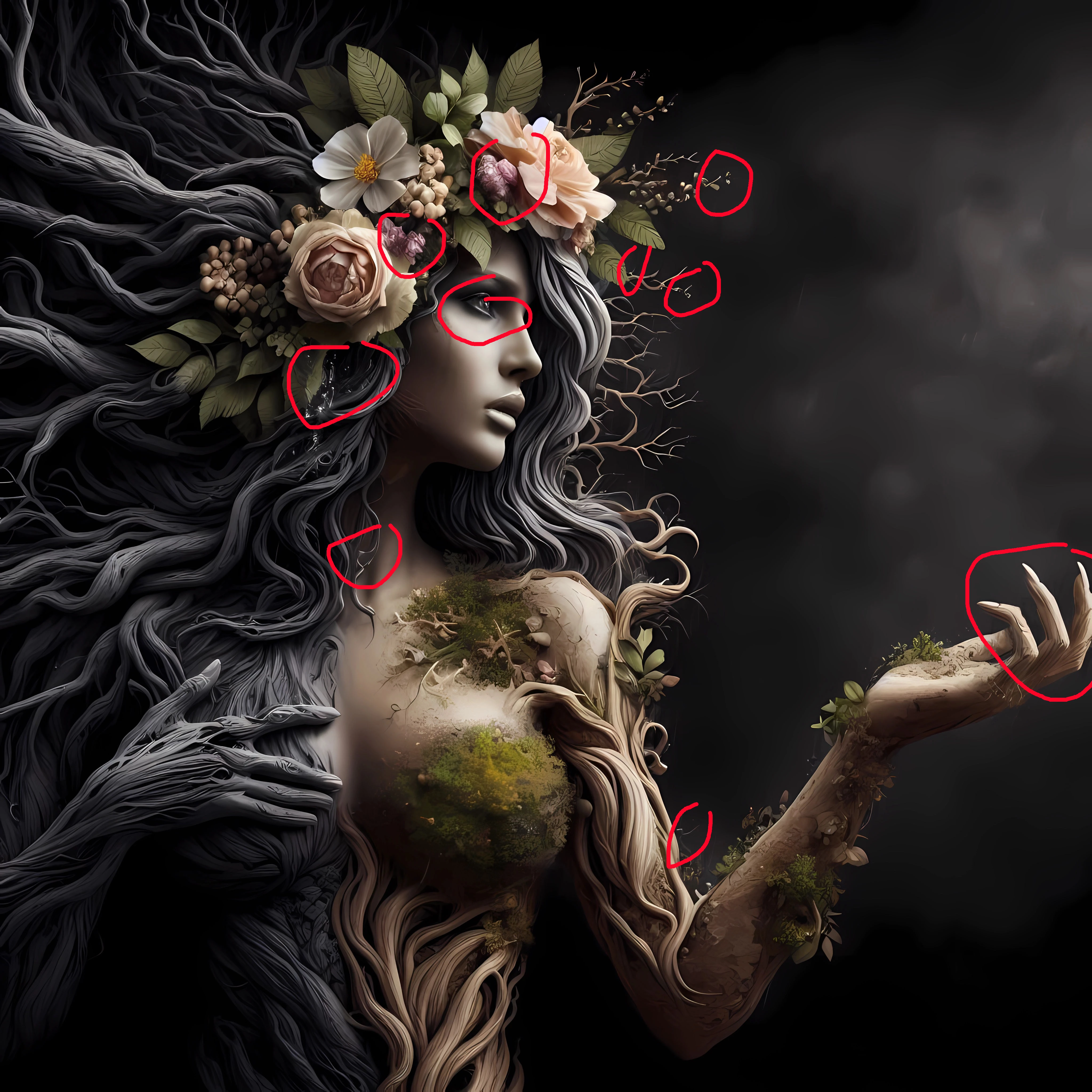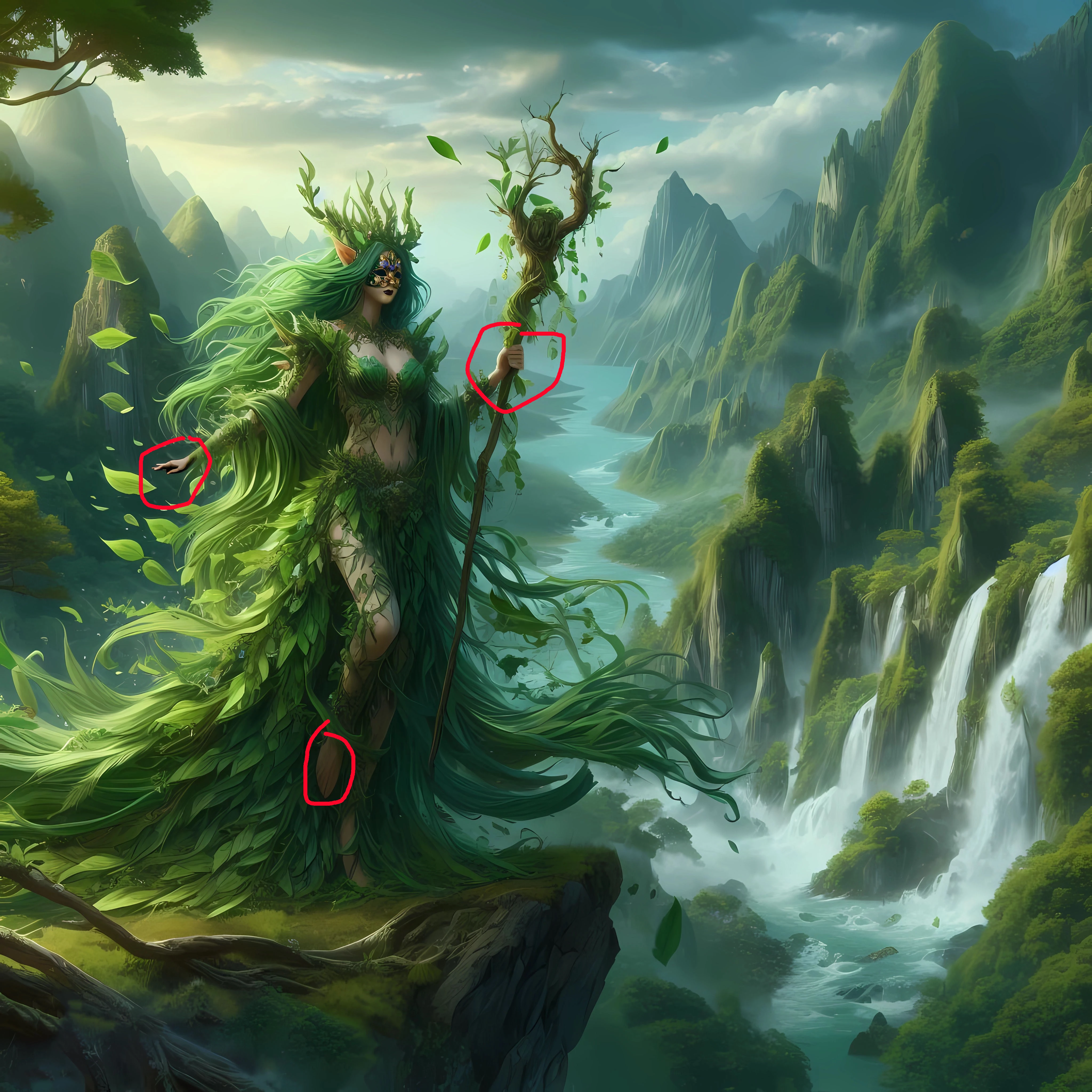 Poorly drawn hands; even in such a fantasy image, there is an expectation of a certain level of realism...